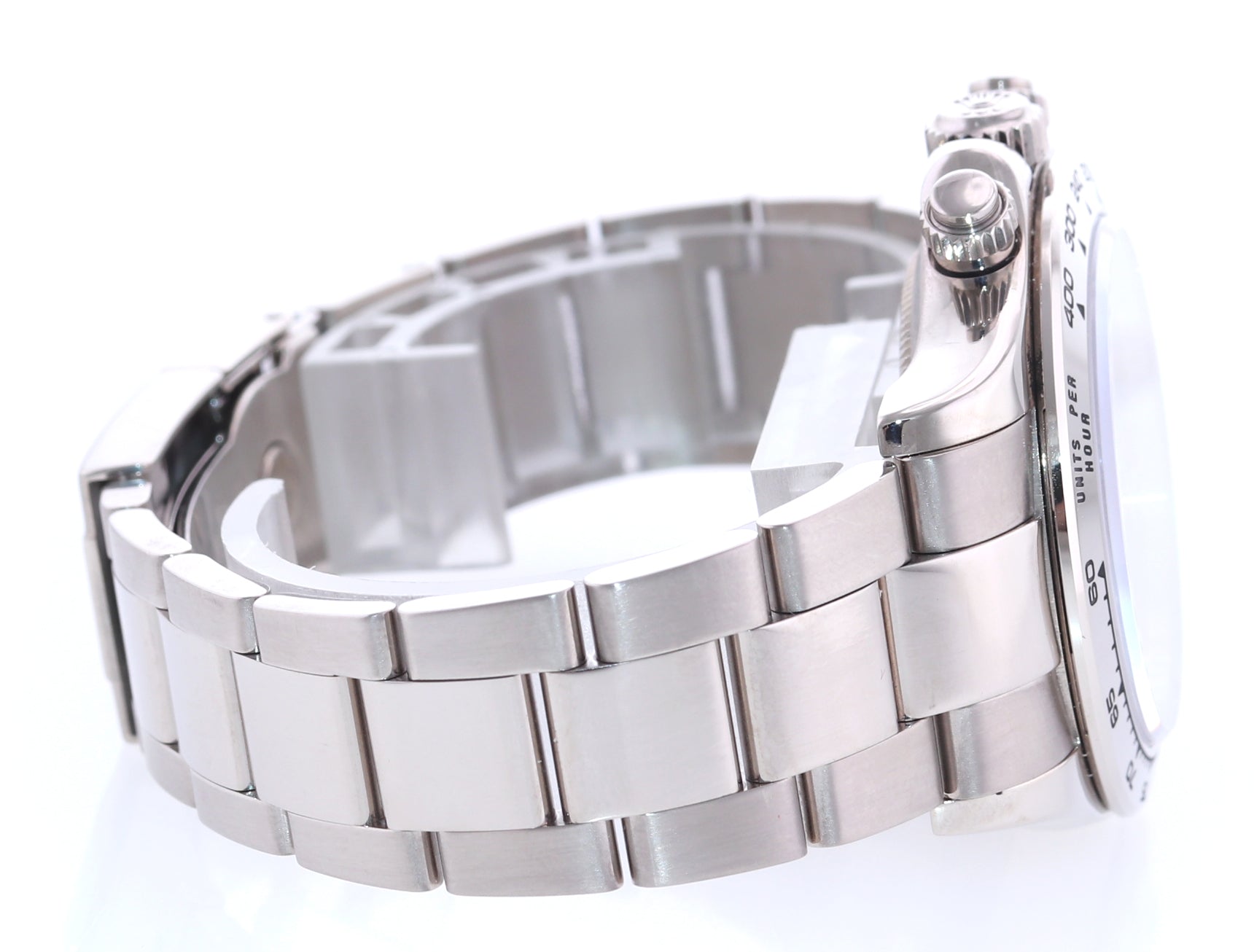 | Bezel | Rolex 18K White Gold Bezel with an engraved tachymetric scale in excellent condition. |