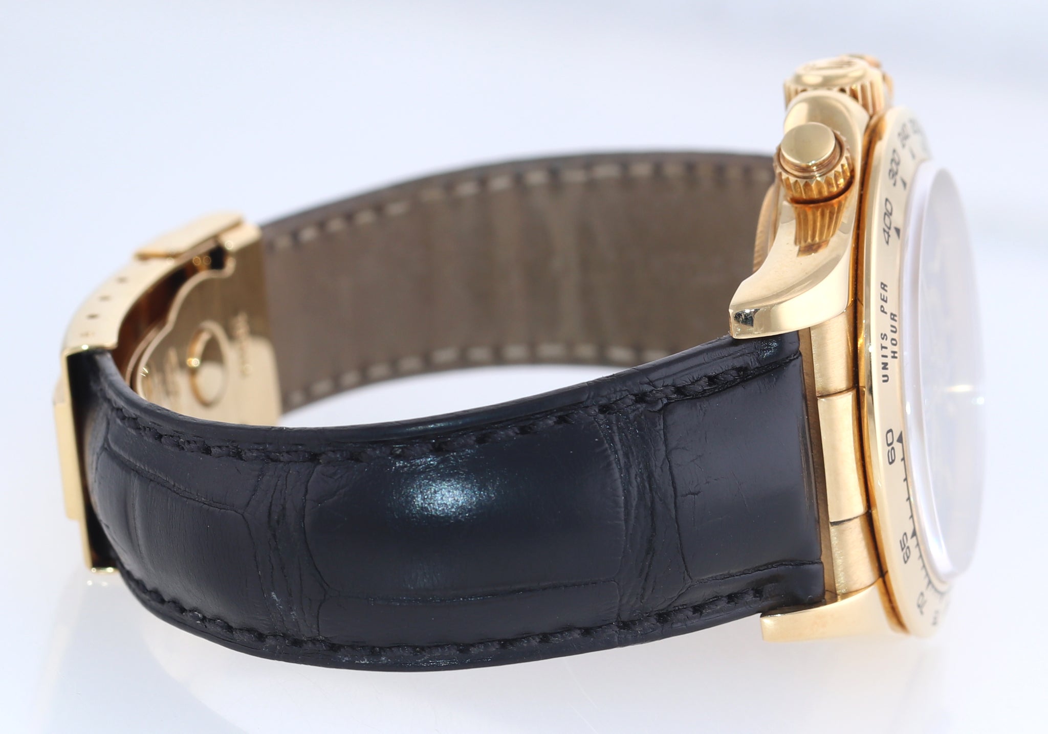 | Bezel | Rolex 18K Yellow Gold Bezel with an engraved Tachymetric scale in great condition. |