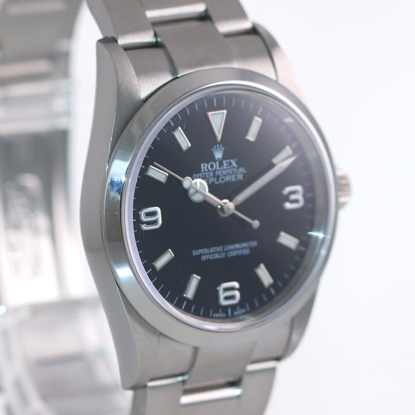 2007 PAPERS MINT Rolex Explorer I Black 36mm 14270 Steel Black Arabic Watch Boxors