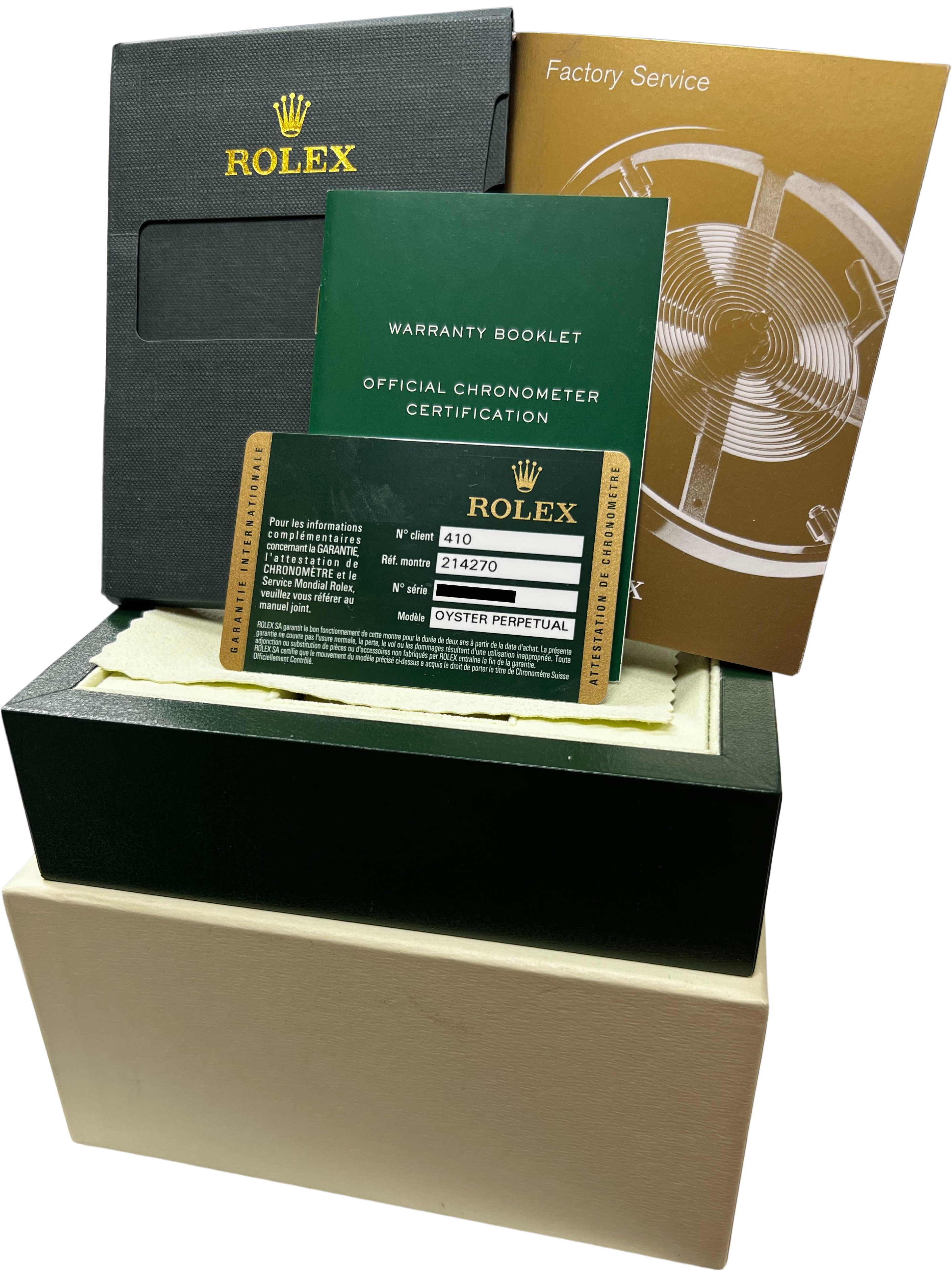 | Box | Yes, this item includes a Rolex watch box and outer box. (Pictured) |