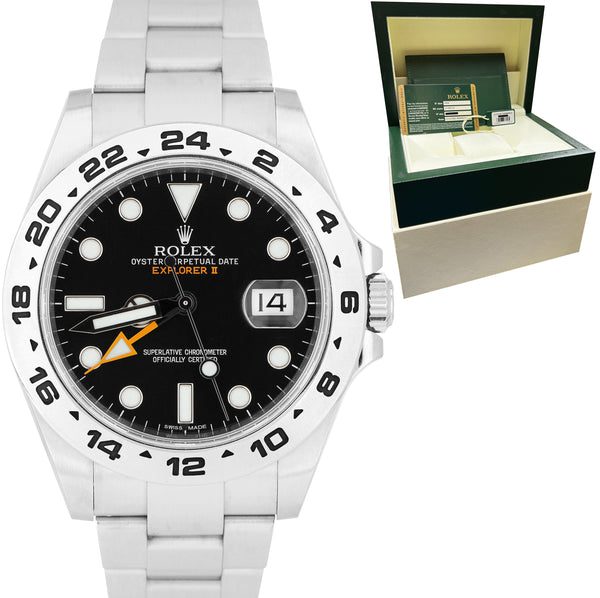 MINT Rolex Explorer II Black Orange Stainless GMT Date 42mm Watch 216570 B+P