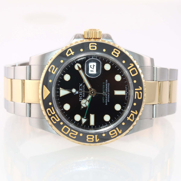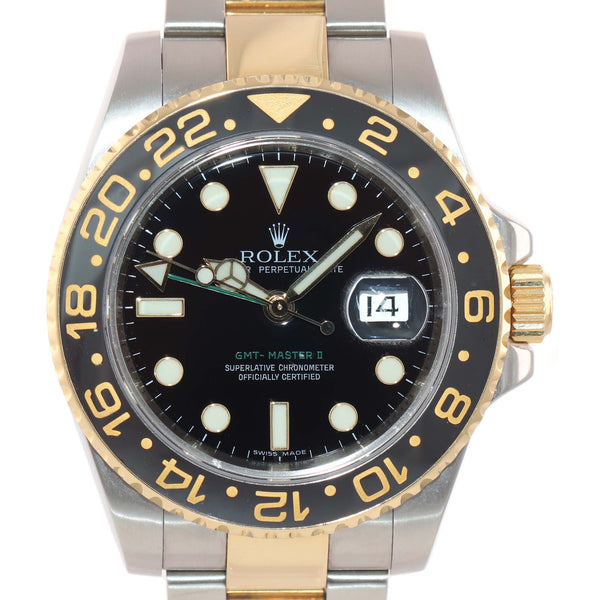 MINT Rolex GMT-Master II Ceramic 116713 Black Green Two Tone Steel Gold Watch Box
