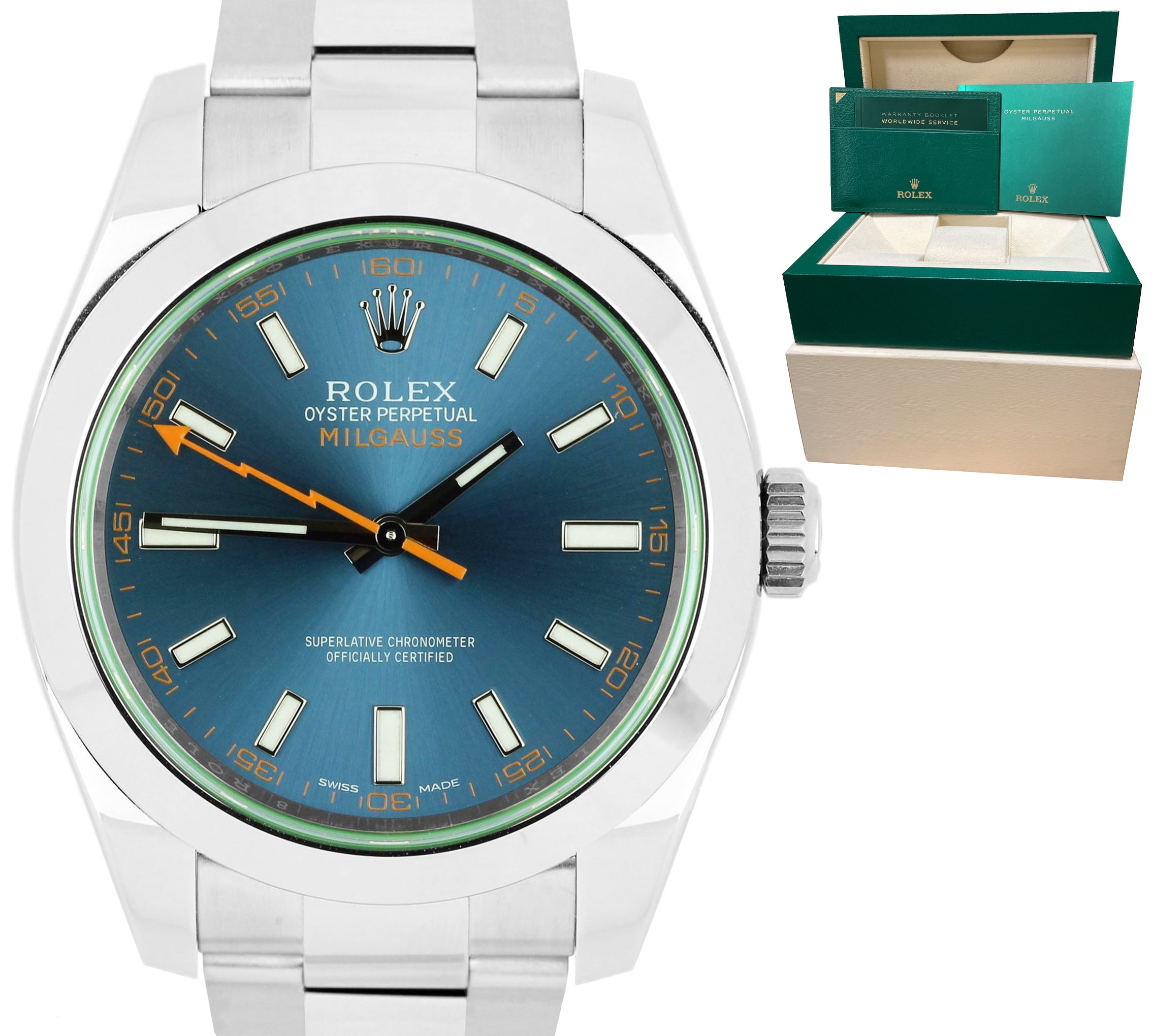 MINT Rolex Milgauss Z-Blue Green Anniversary 116400 GV Stainless Steel Watch