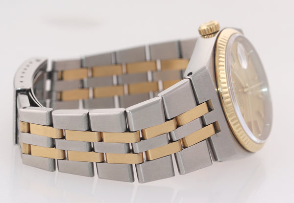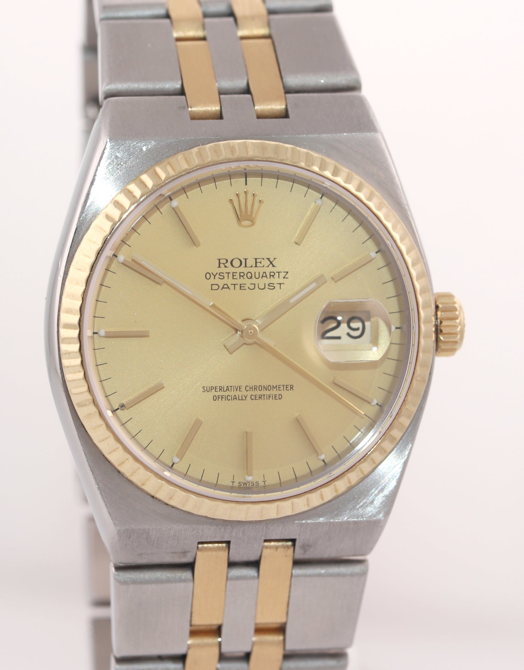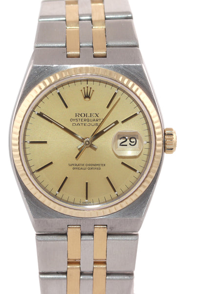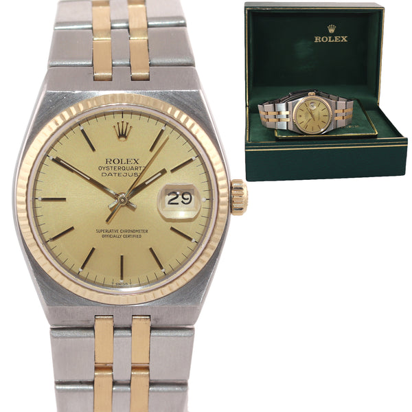 MINT Rolex OysterQuartz DateJust 17013 Champagne Two-Tone 18k Gold Steel Integral Watch