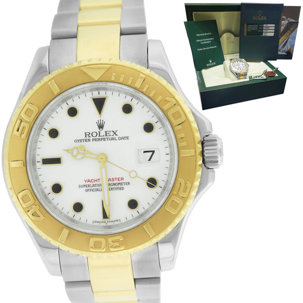 ENGRAVED Rolex Yacht-Master 40mm 18K Two-Tone Steel Gold White Dial Date Watch 16623