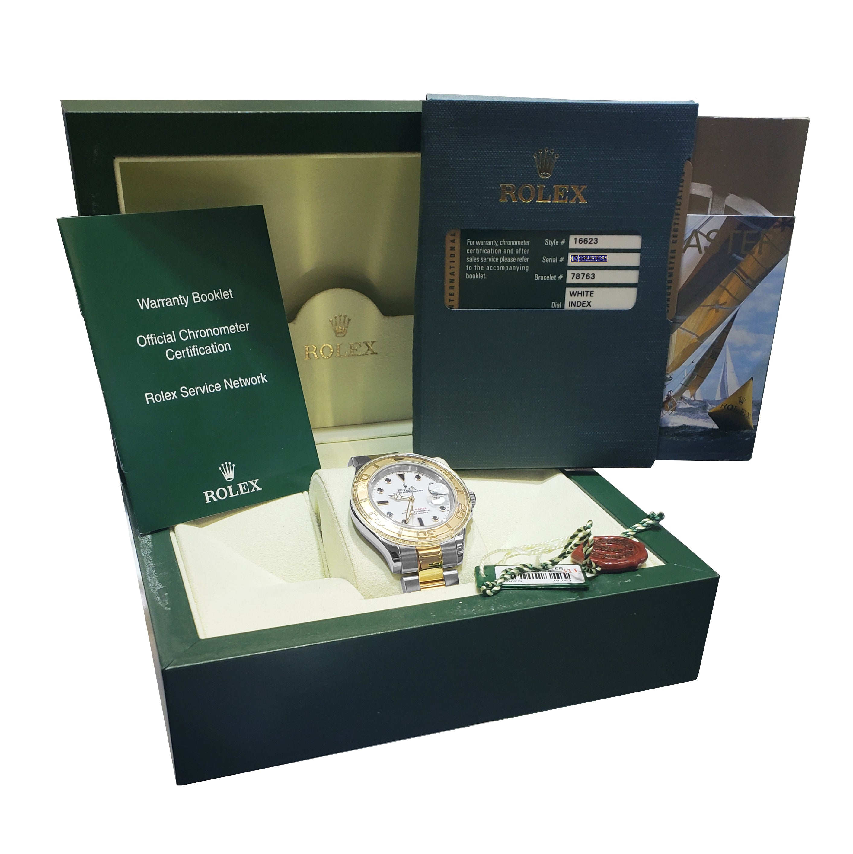 This is the RARE last year of the 16623 reference number which features an inner-bezel (flange/rehaut) engraving including "ROLEX" several times and the watch's unique serial number!