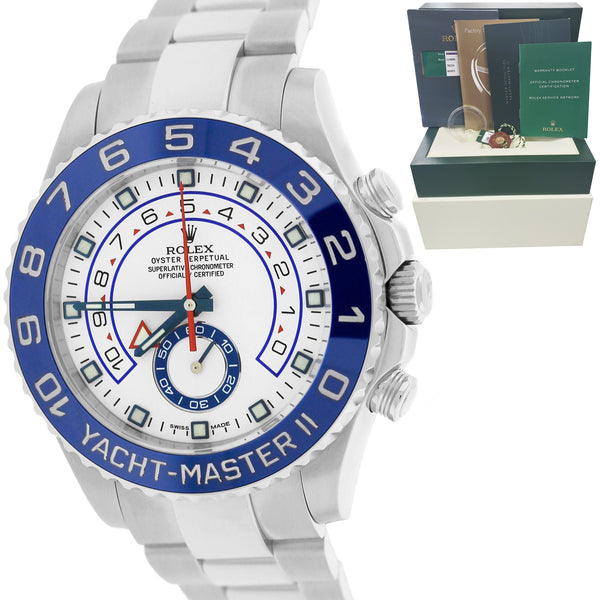 MINT Rolex Yacht-Master II 44mm Stainless Steel White Blue Ceramic Watch 116680