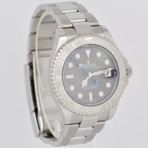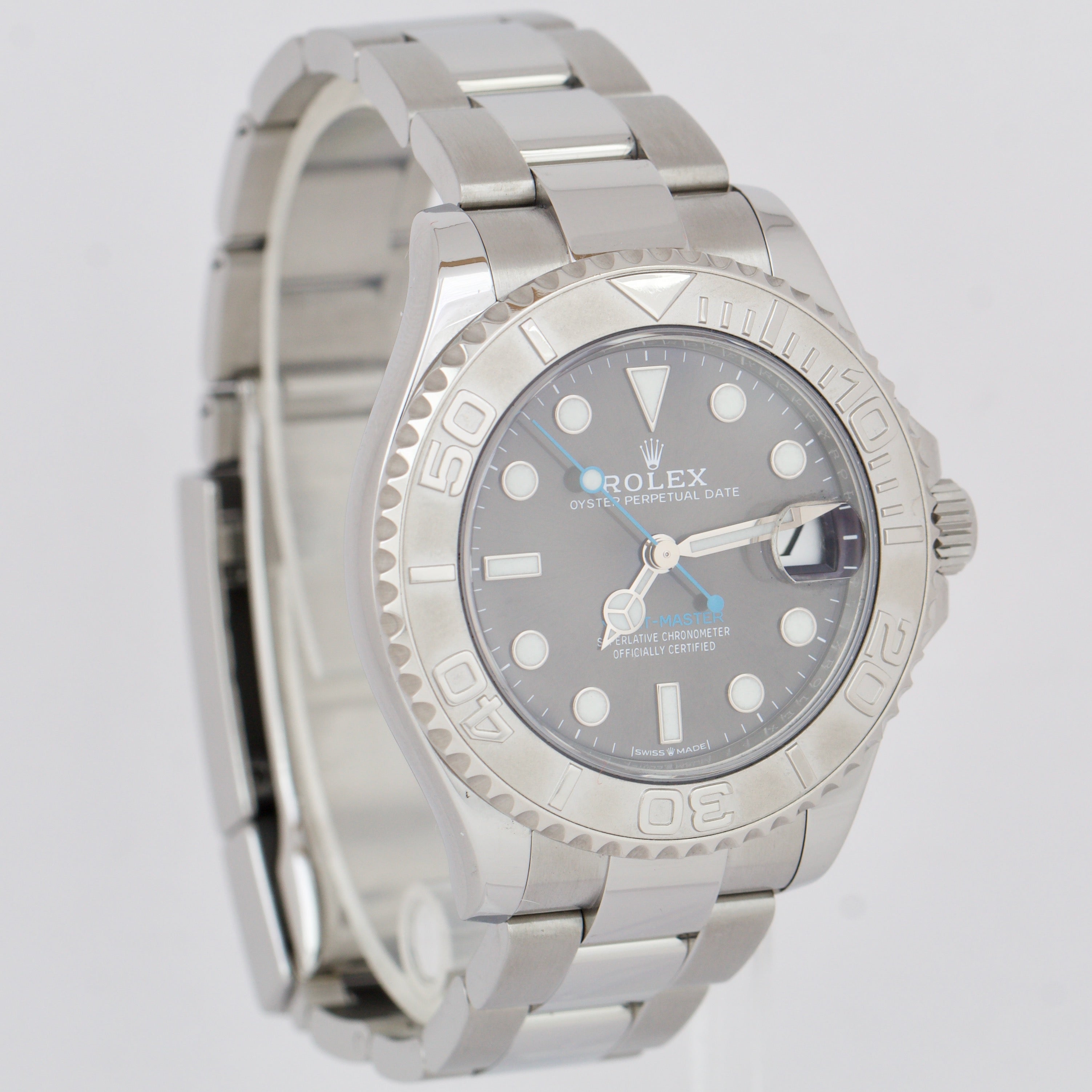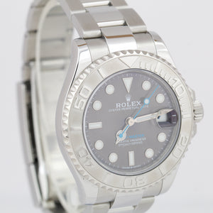 MINT Rolex Yacht-Master Midsize Steel RHODIUM Blue Gray Date 37mm Watch 268622