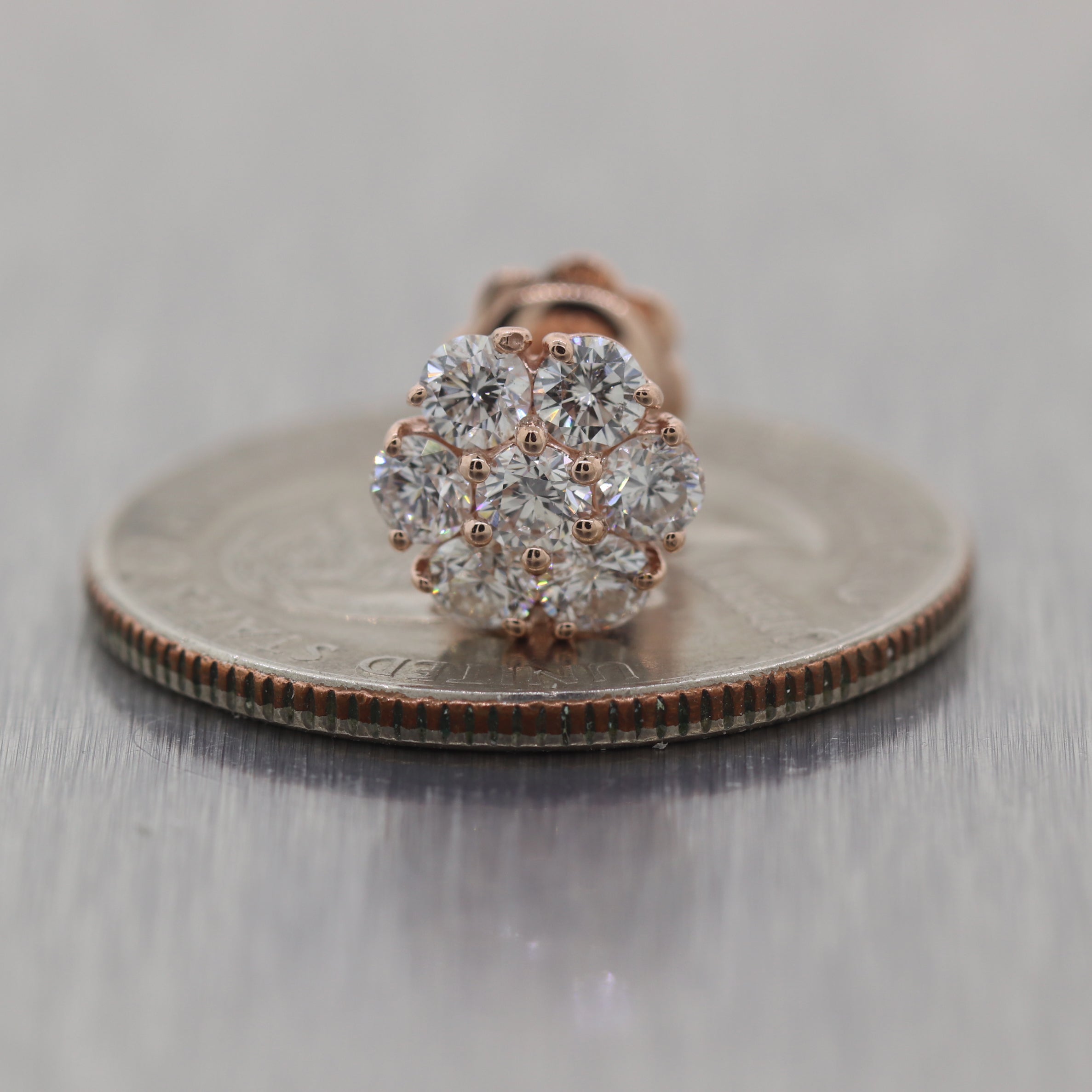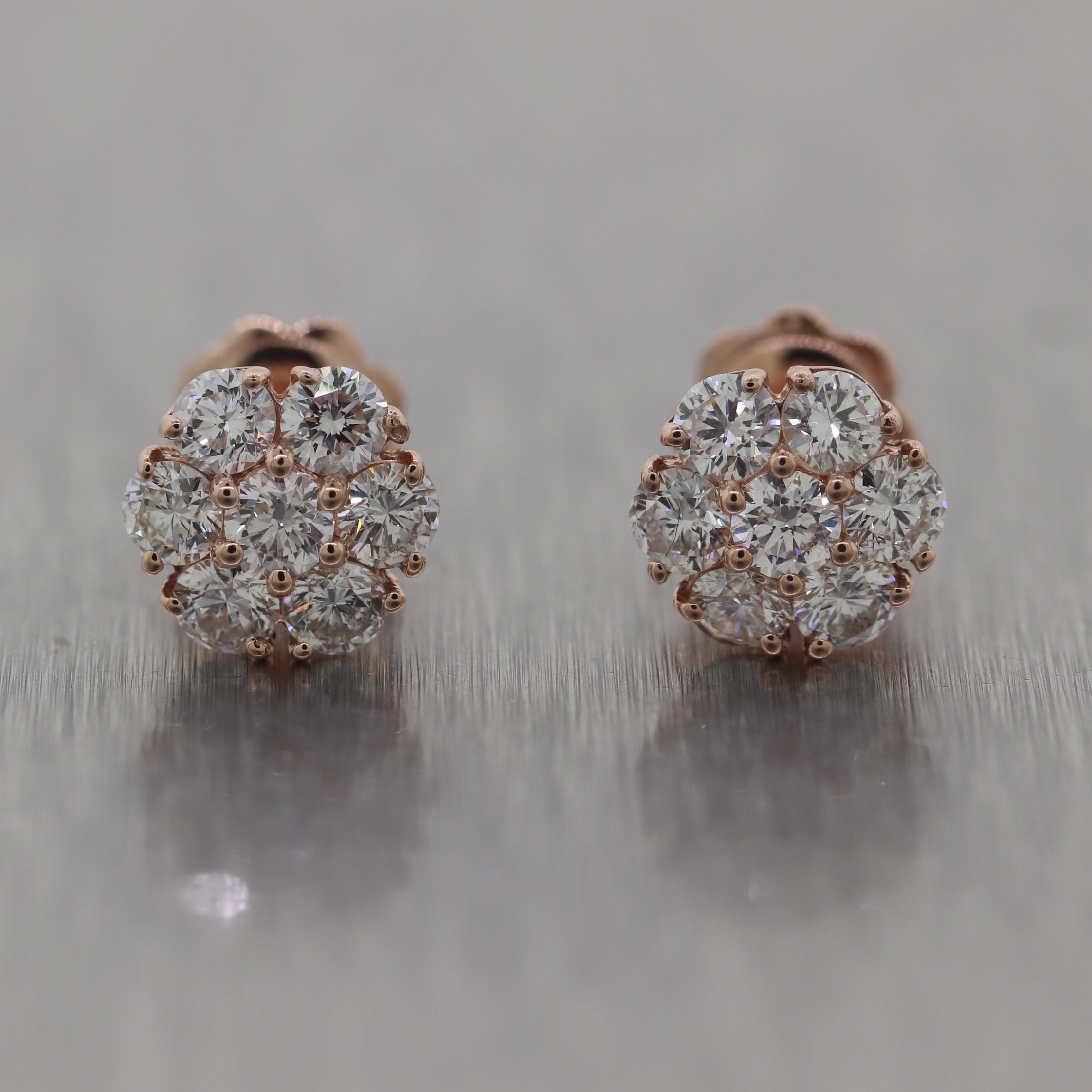 For your consideration, an authentic Modern 14k Rose Gold 1.50ctw Diamond Flower Cluster Earrings. They will come professionally packaged in a beautiful gift presentation box and our 30day money-back return policy. L9
