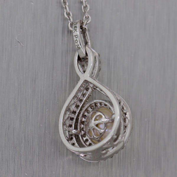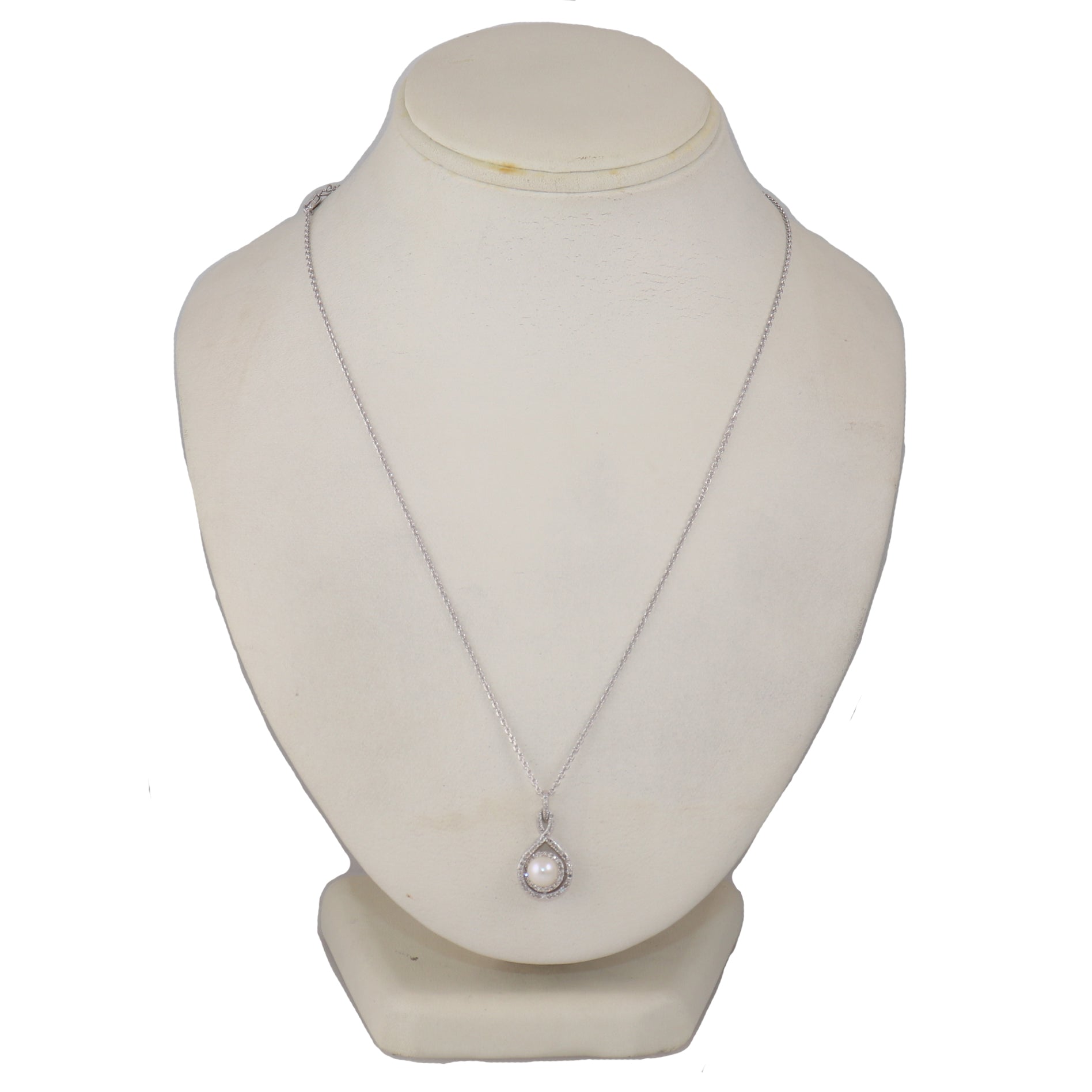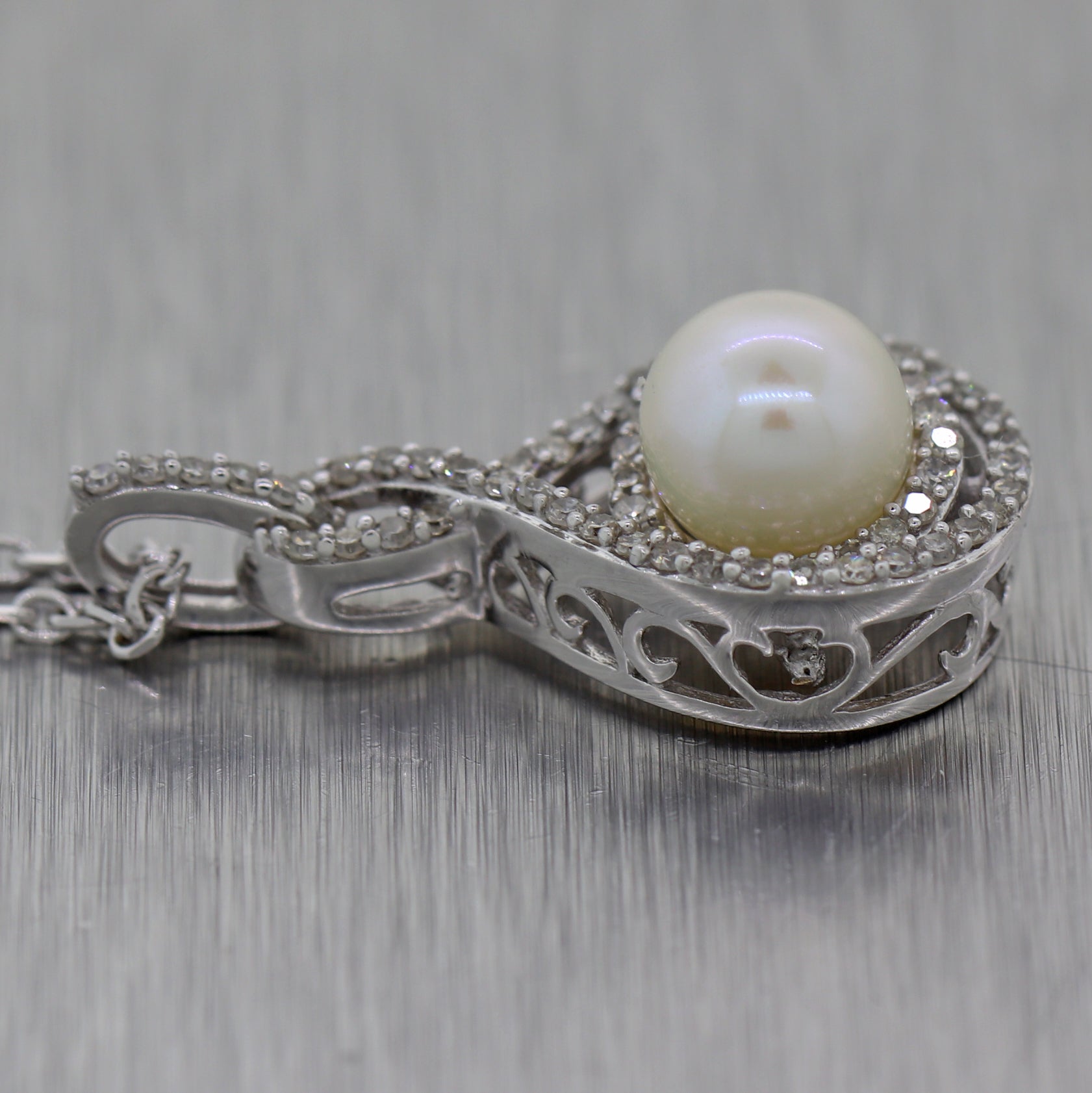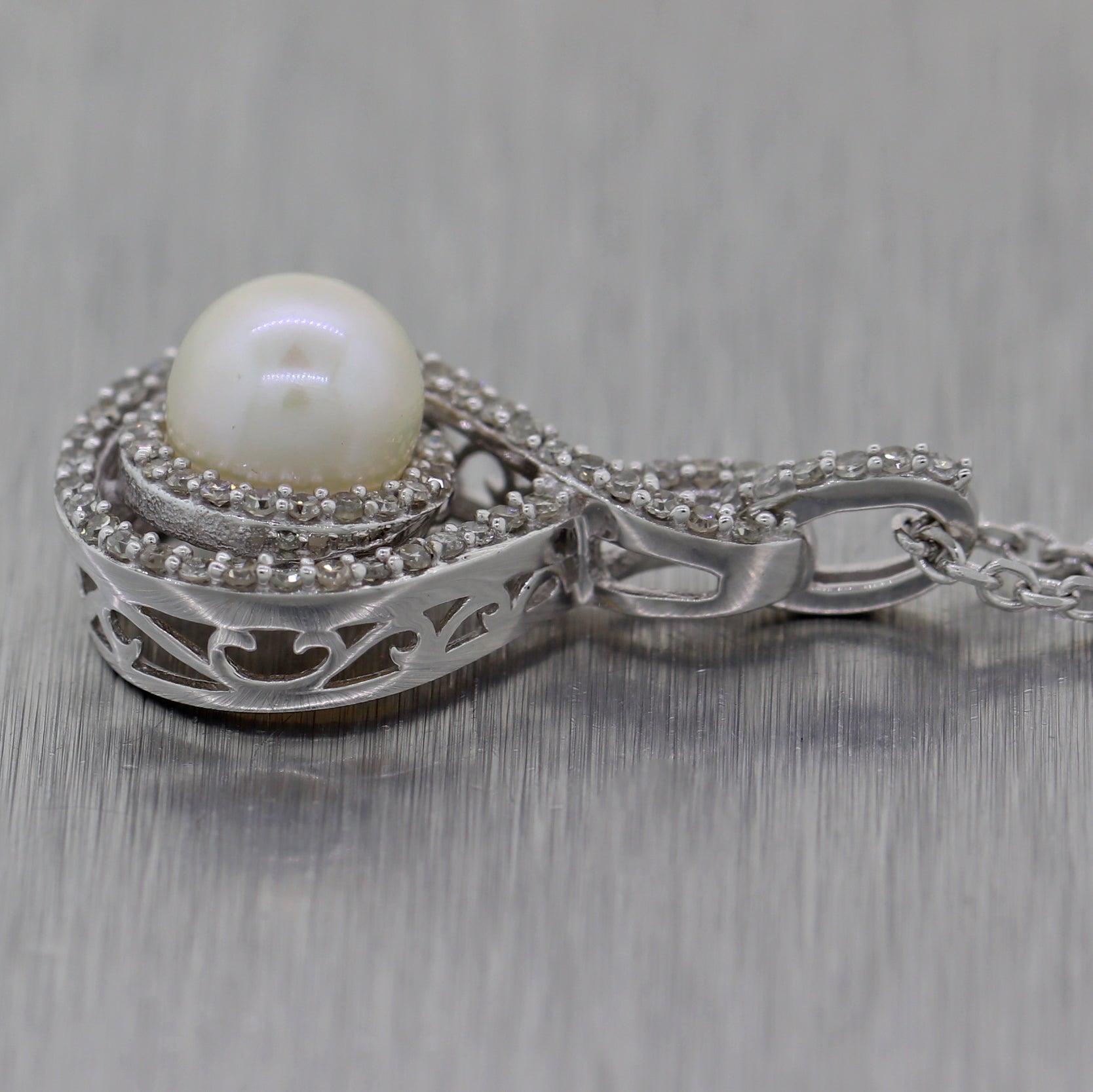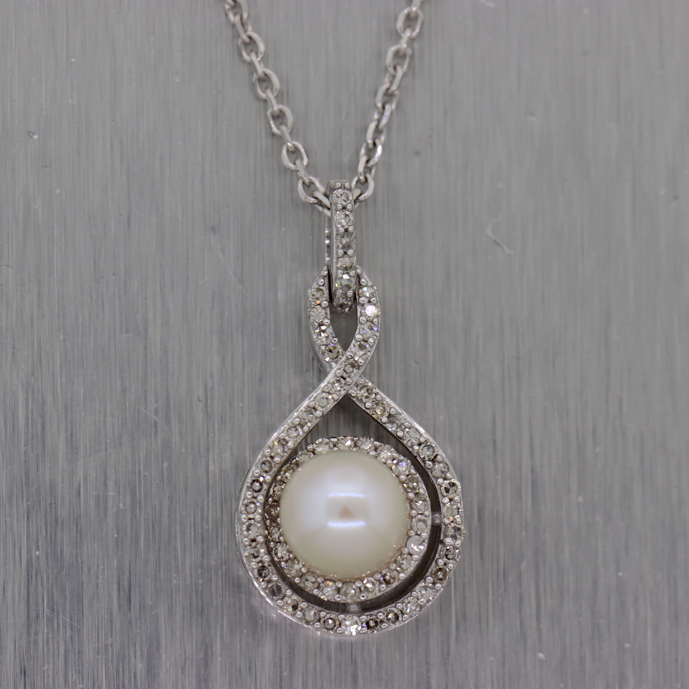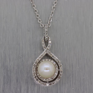 For your consideration, an authentic Modern 14k White Gold 0.25ctw Diamond & Pearl Teardrop 18" Necklace. This necklace will come in a lovely jewelry box for a perfect presentation and our unconditional 30 day money back return policy. D0