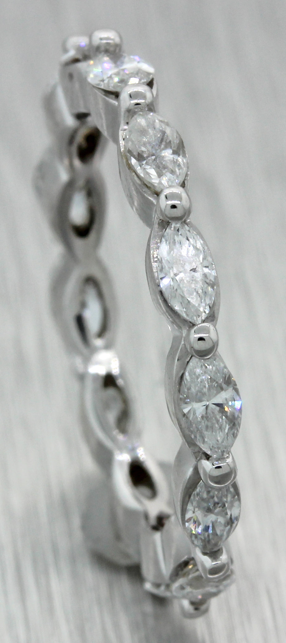 For your consideration, an authentic Vintage Estate 14k White Gold 1.23ct Marquise Diamond Eternity Wedding Band Ring. It will come in a lovely ring box for a perfect presentation and our unconditional 30 day money back return policy.