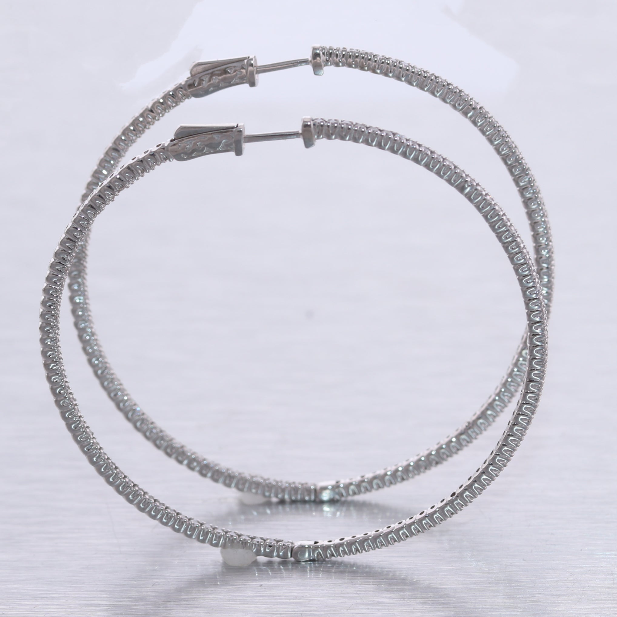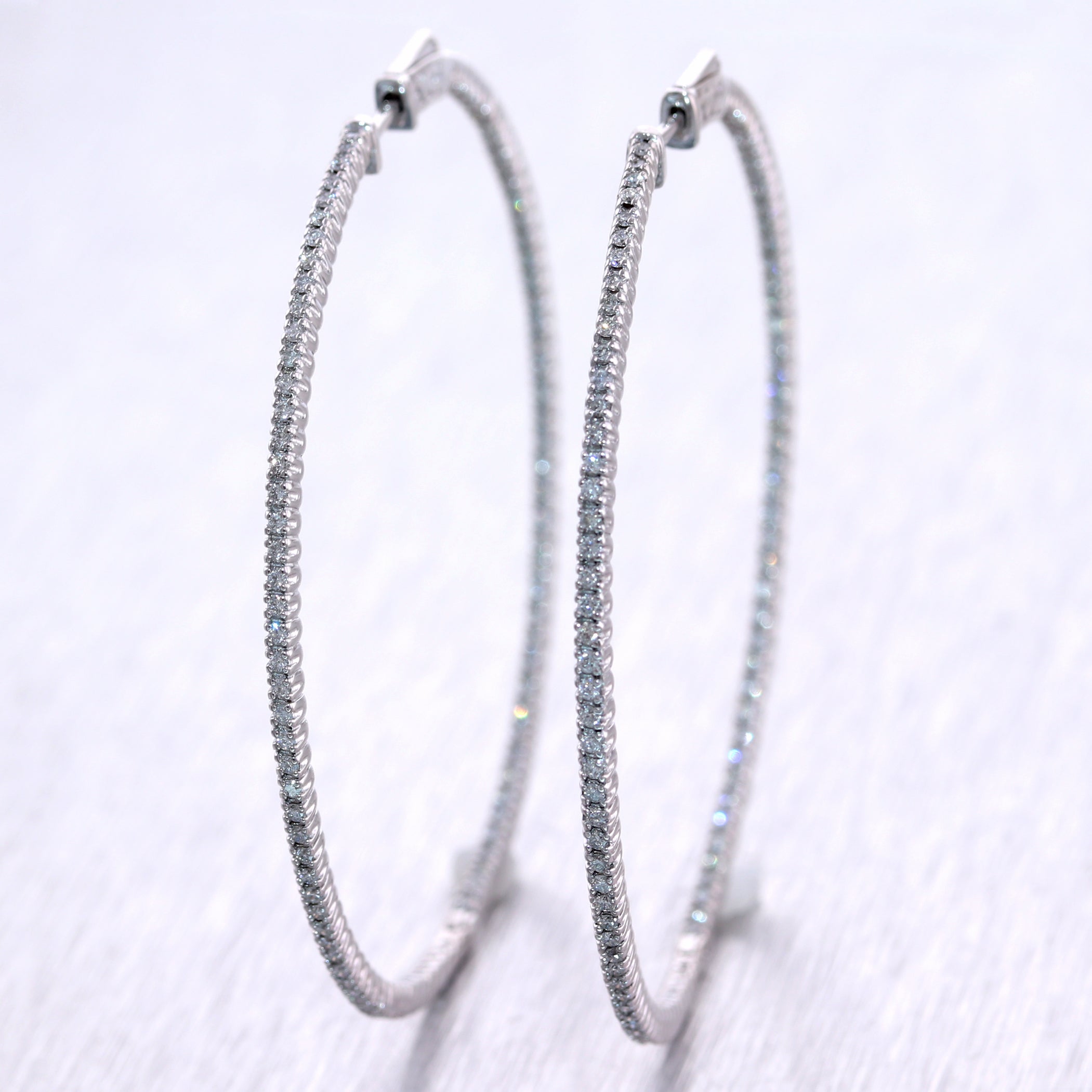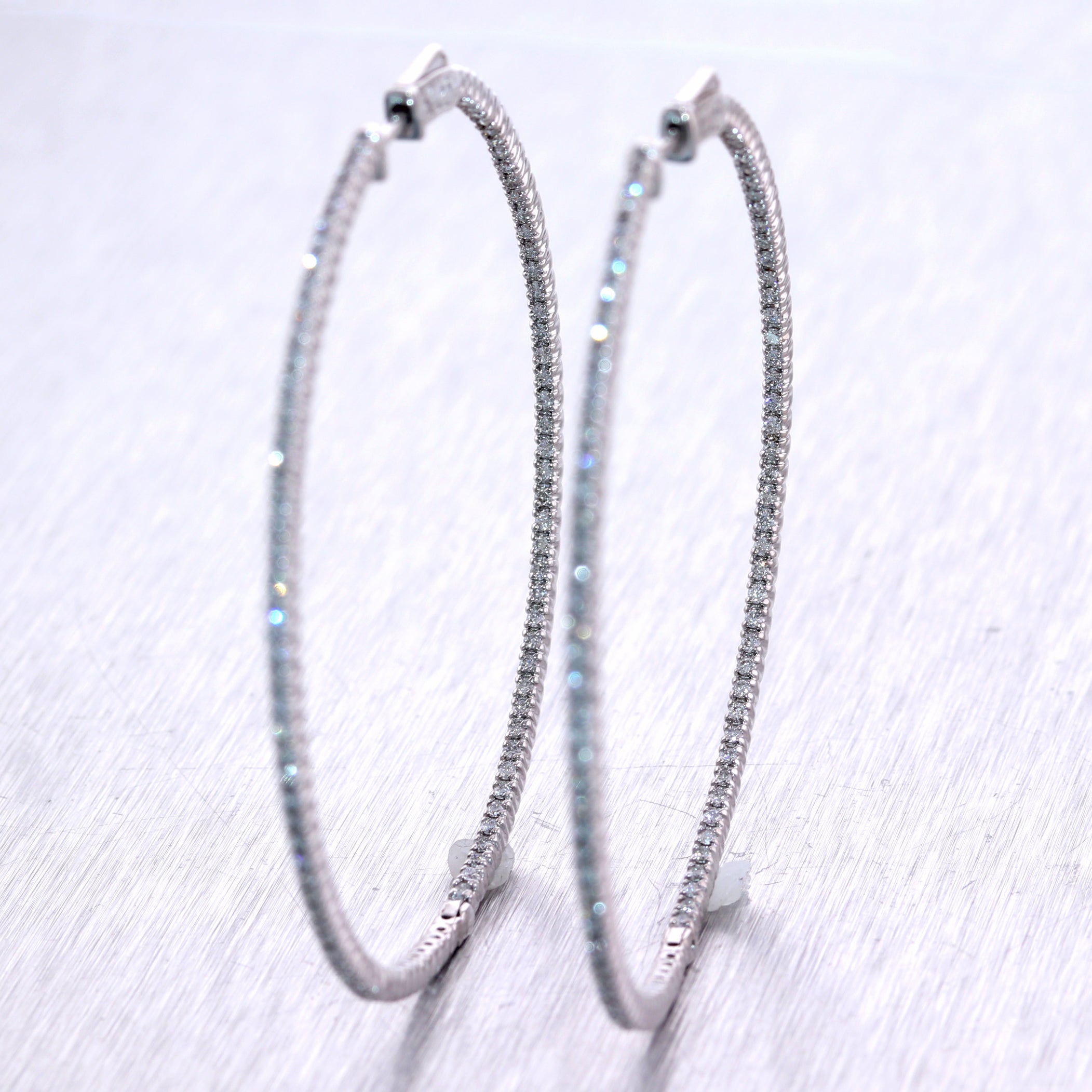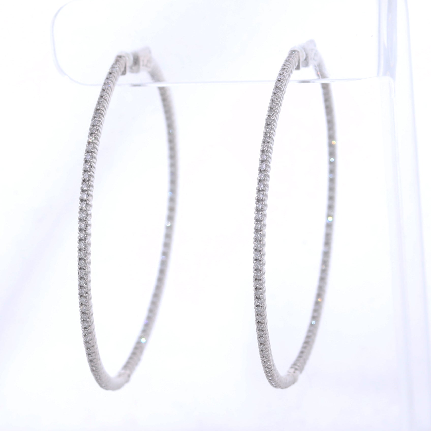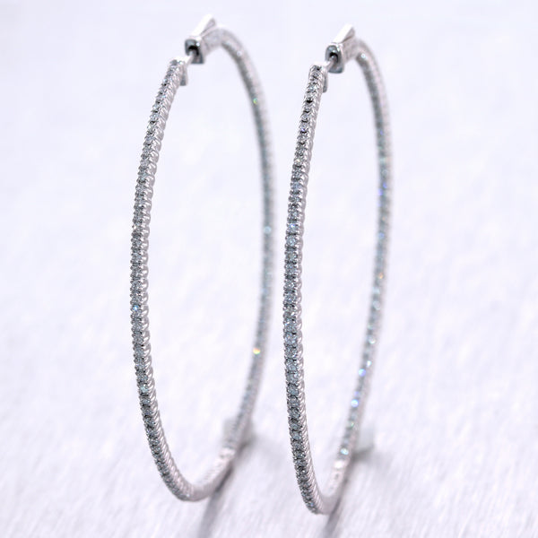 For your consideration, an authentic pair of Modern 14k White Gold 1.75ctw Diamond In & Out Hoop Earrings. They will come professionally packaged in a Collectors Coins & Jewelry gift presentation box. B2
