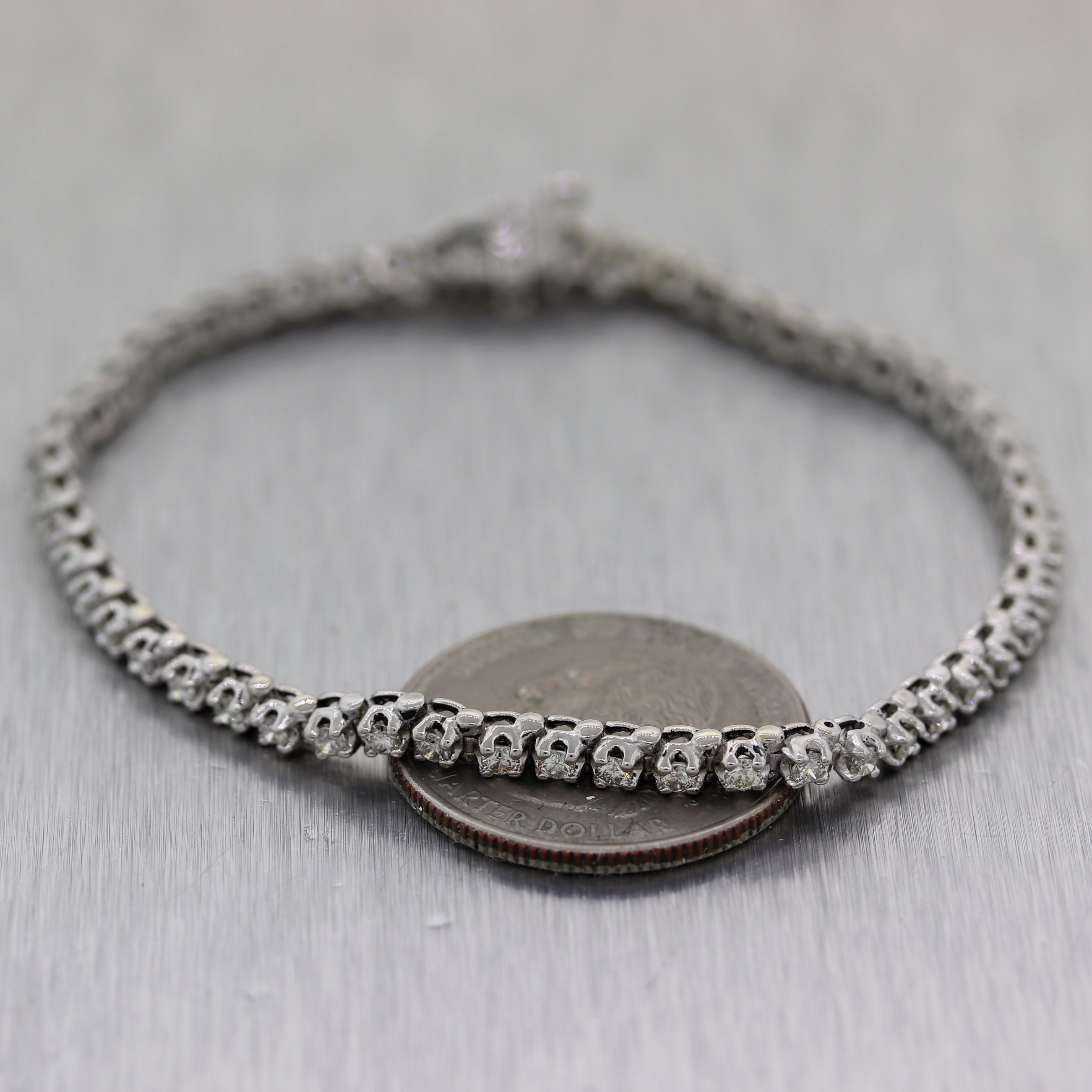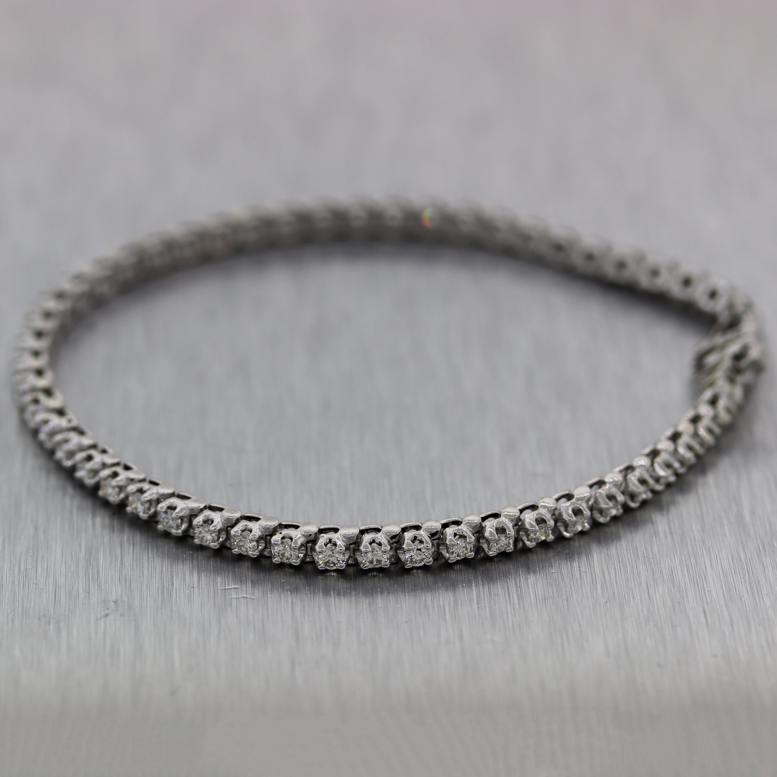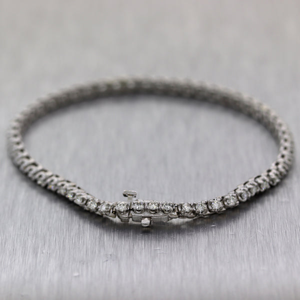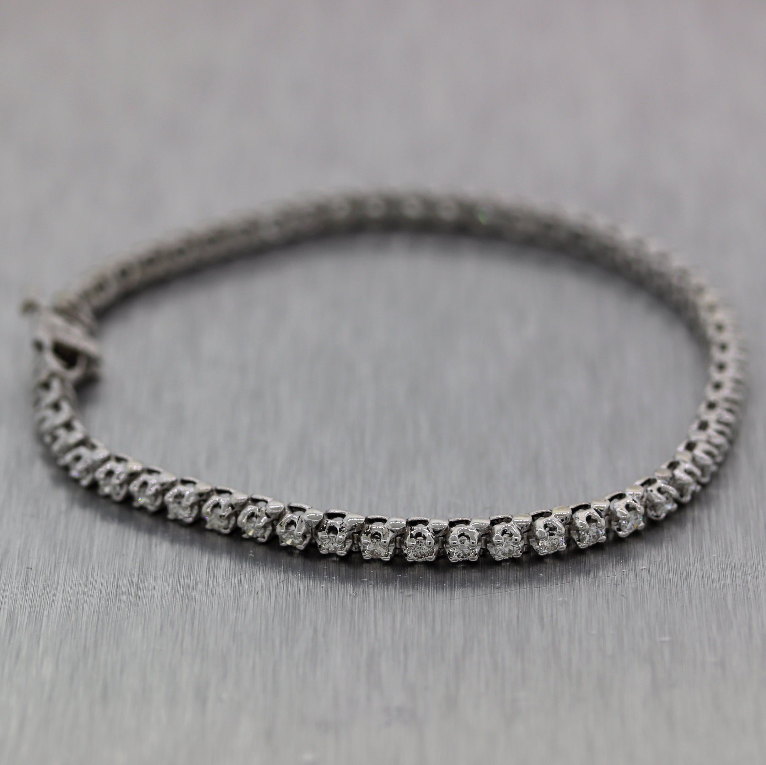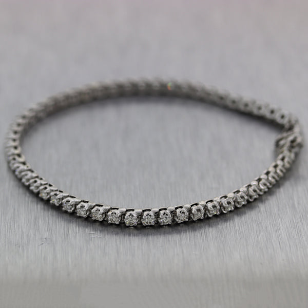 For your consideration, an authentic Modern 14k White Gold 2ctw Diamond Tennis Bracelet. It will come in a lovely bracelet box for a perfect presentation and our unconditional 30day money-back return policy. J0