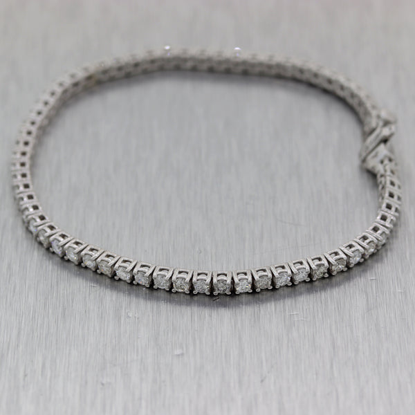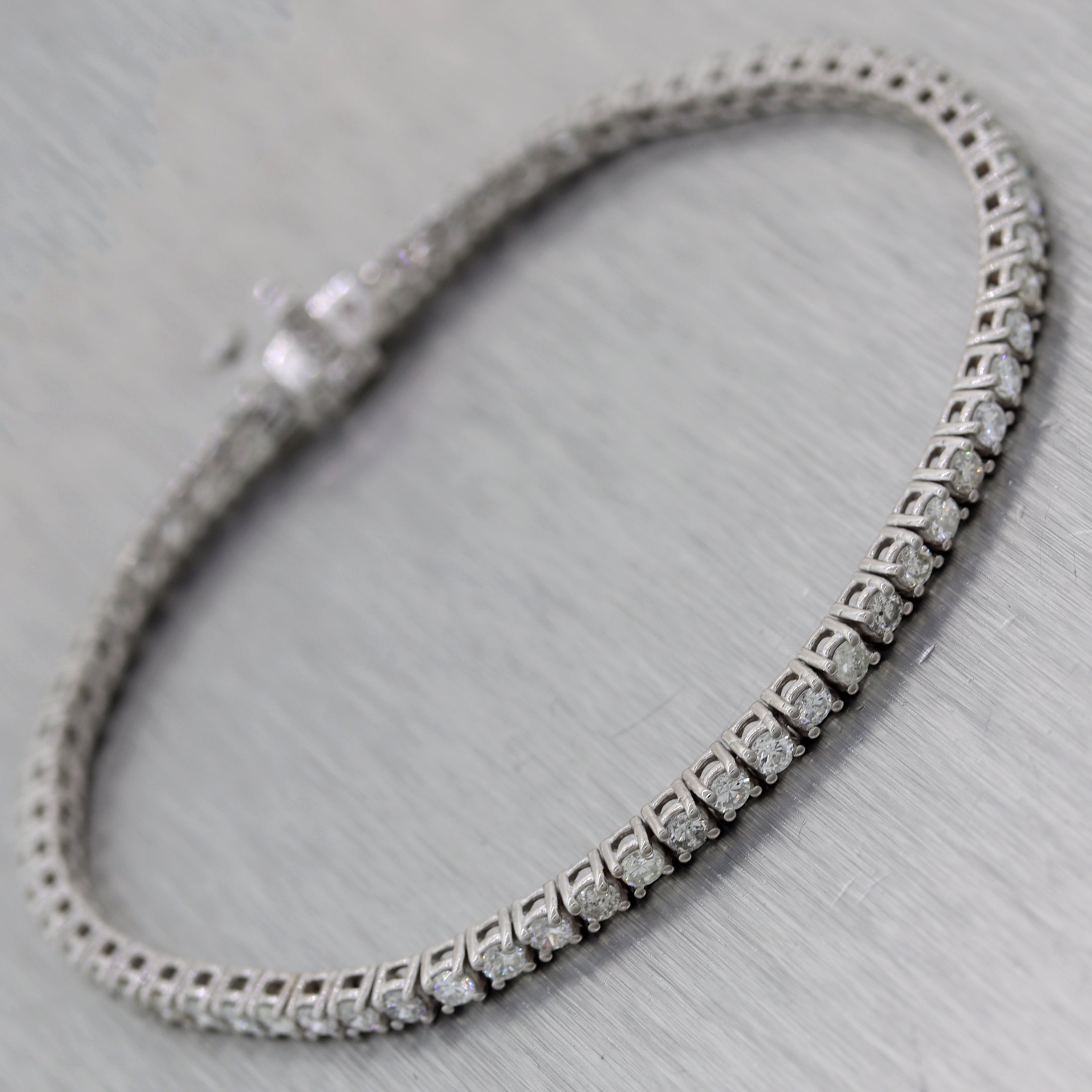 For your consideration, an authentic Modern 14k White Gold 3.01ctw Diamond Tennis Bracelet. It will come in a lovely bracelet box for a perfect presentation and our unconditional 30day money-back return policy. F0