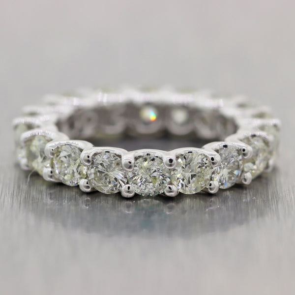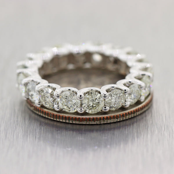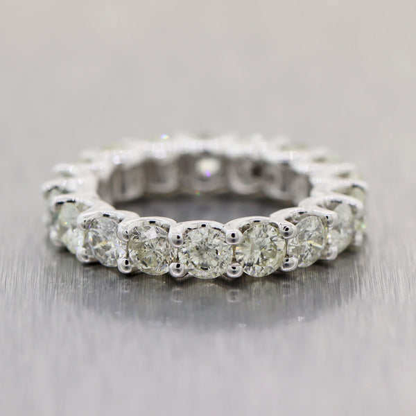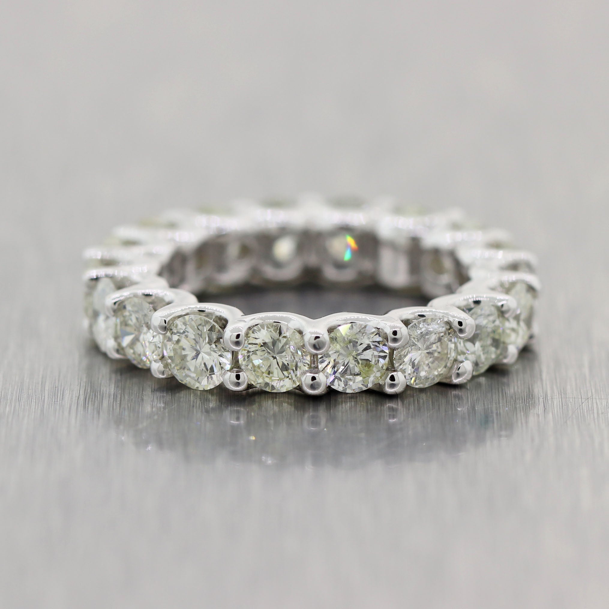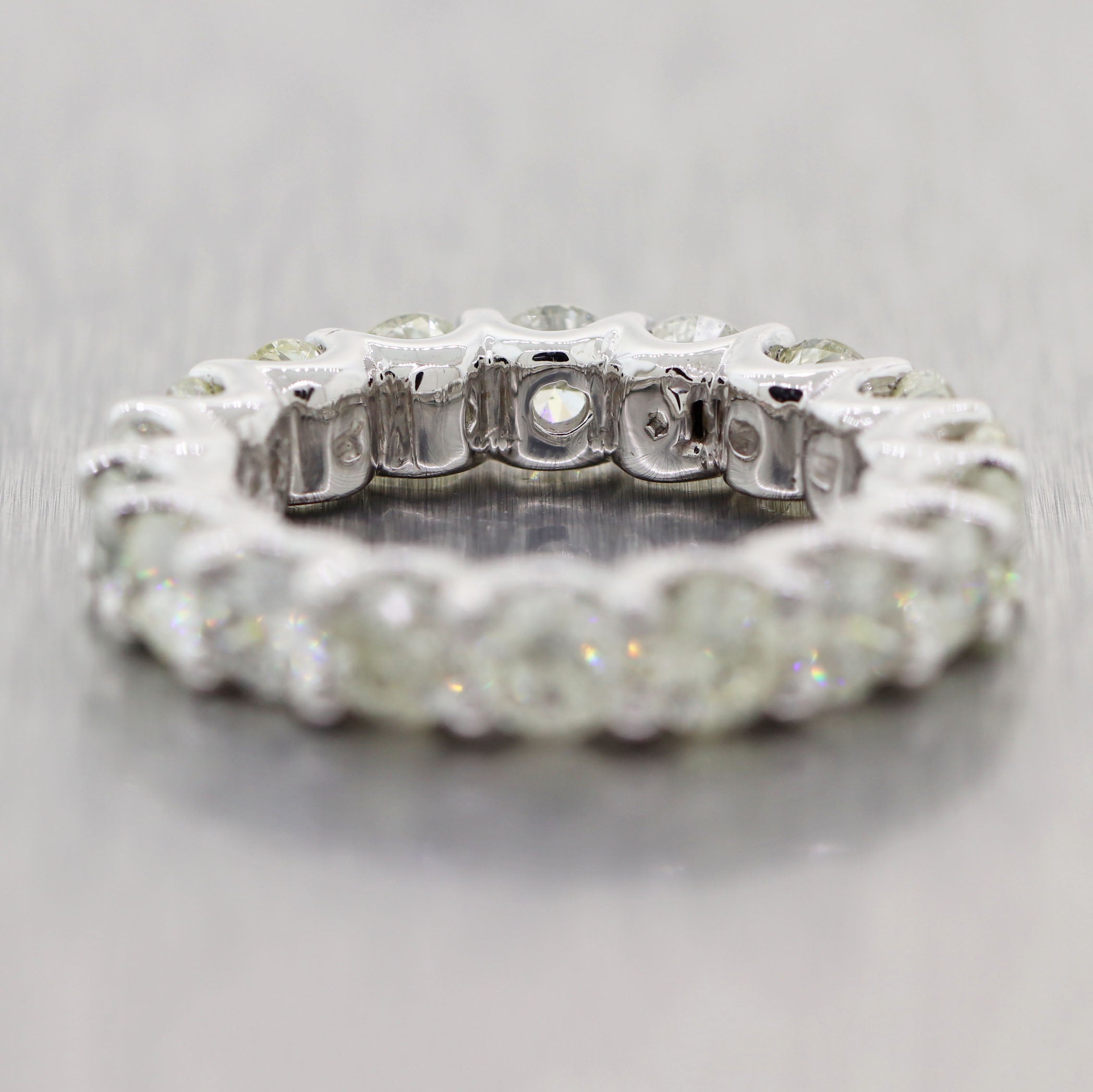 For your consideration, an authentic Modern 14k White Gold 4.76ctw Diamond Eternity Band Ring. This piece will come in a lovely ring box for a perfect presentation and our unconditional 30 day money back return policy. I9