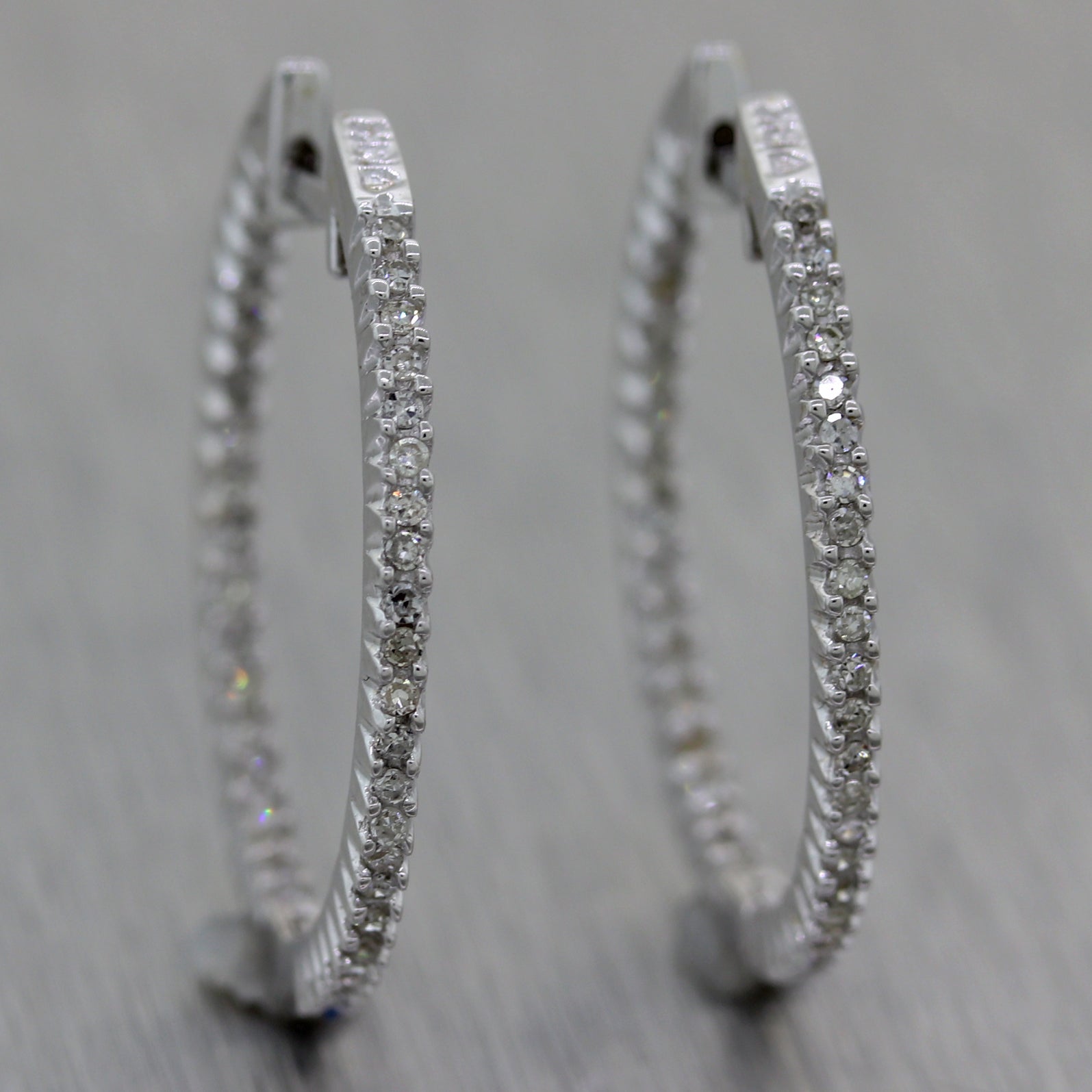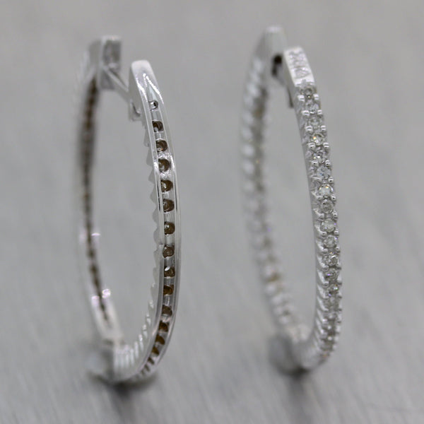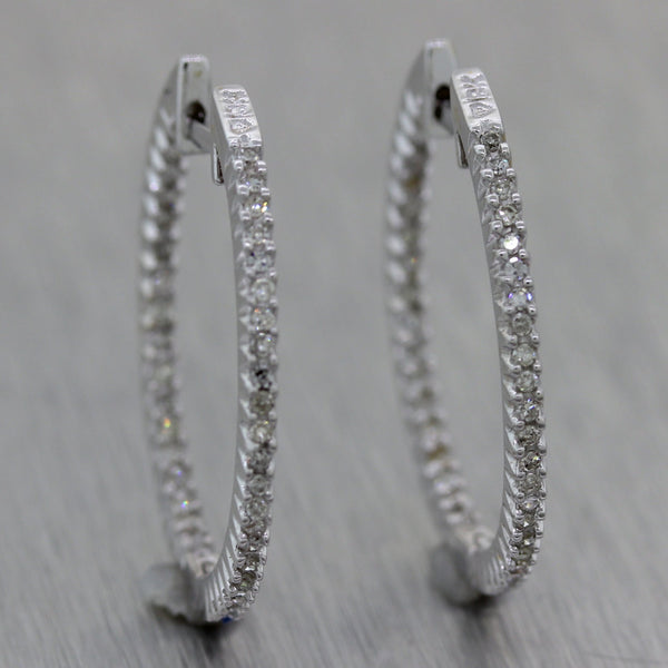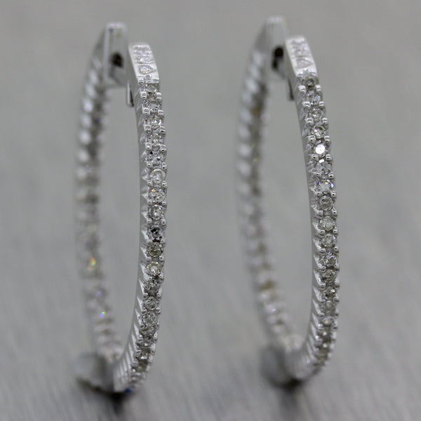 Modern 18k White Gold 0.40ctw Diamond In & Out Hoop Earrings. They will come professionally packaged in a Collectors Coins & Jewelry gift presentation box. E0
