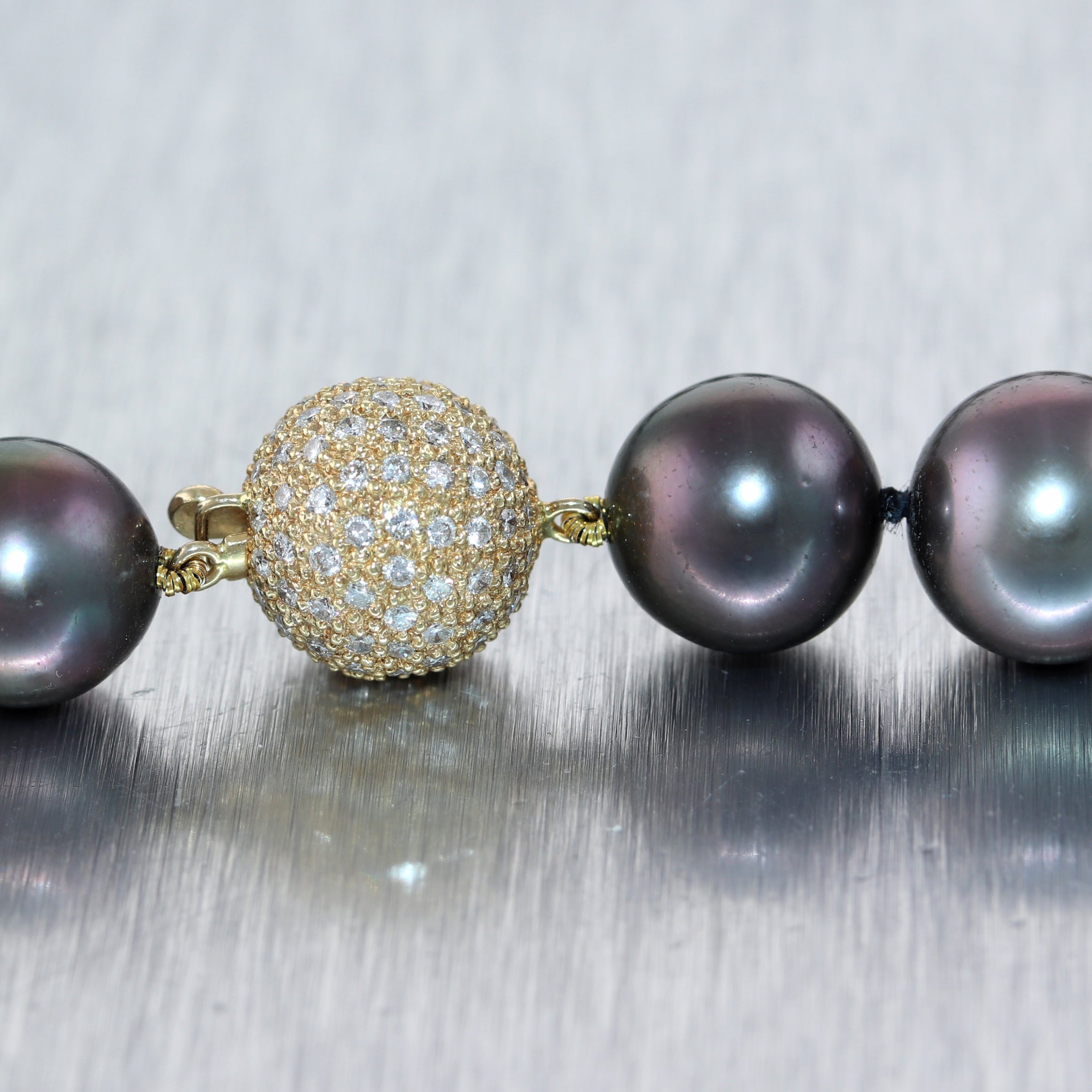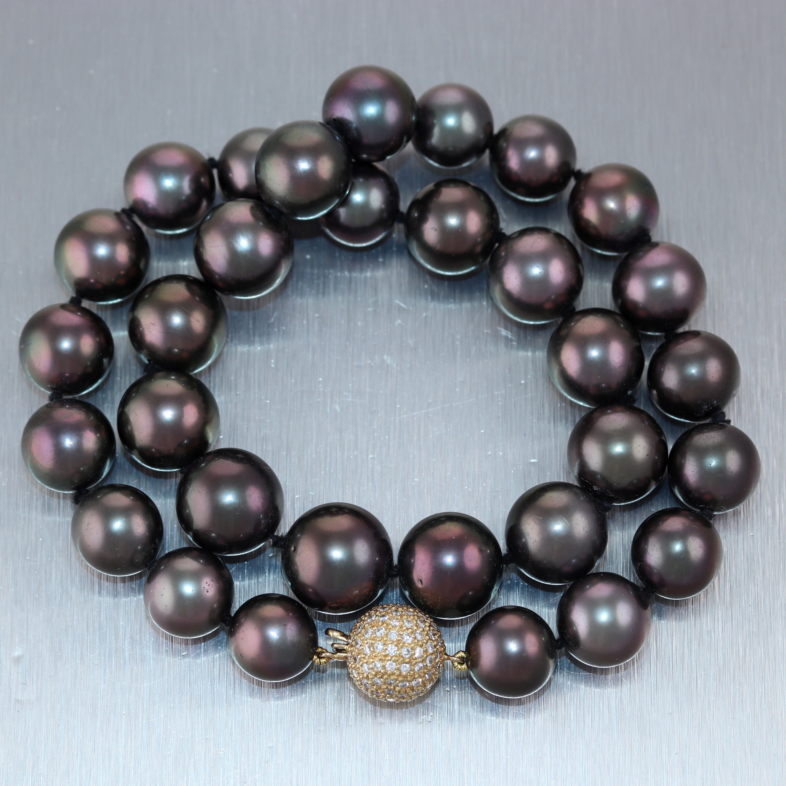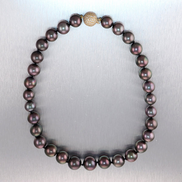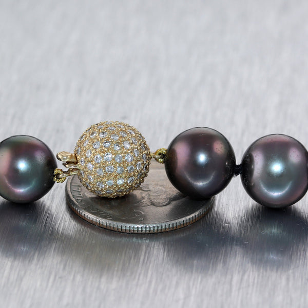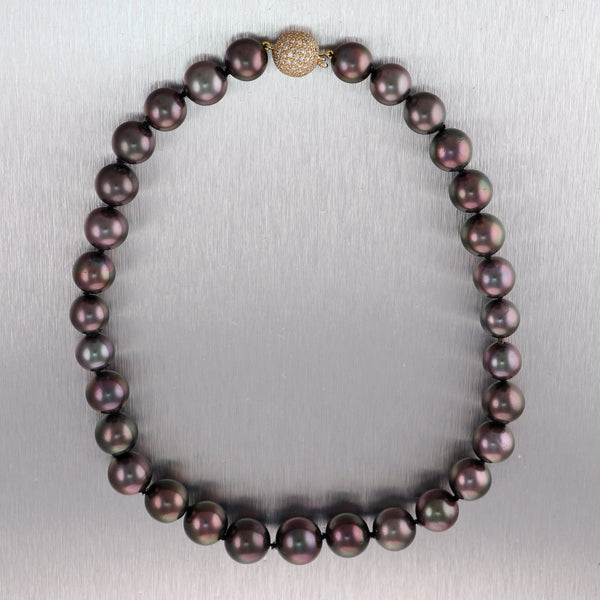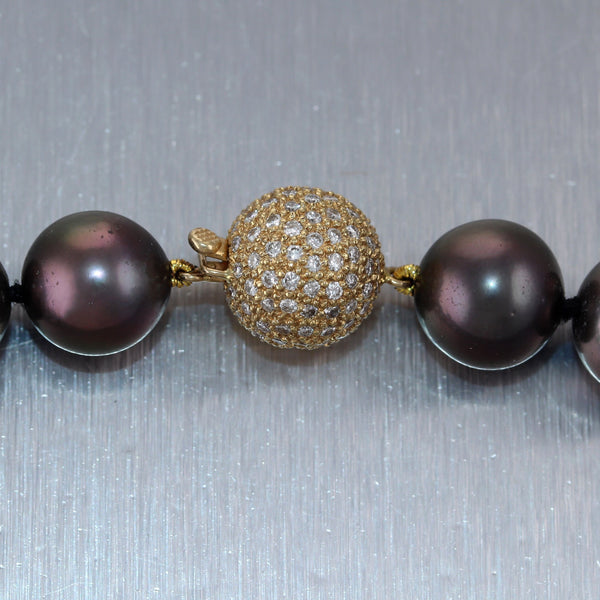 Modern 18k Yellow Gold Black Tahitian Pearl 16" Necklace