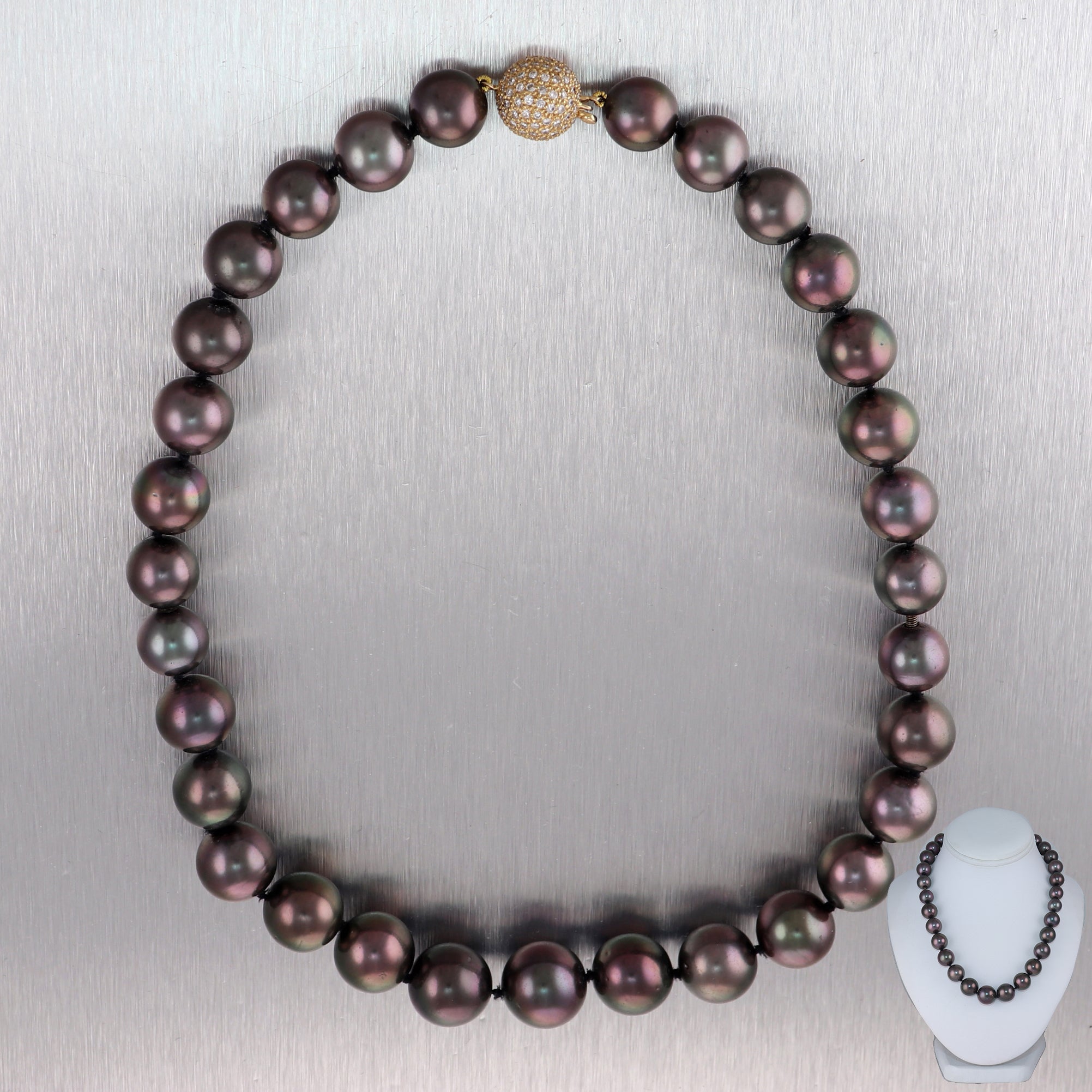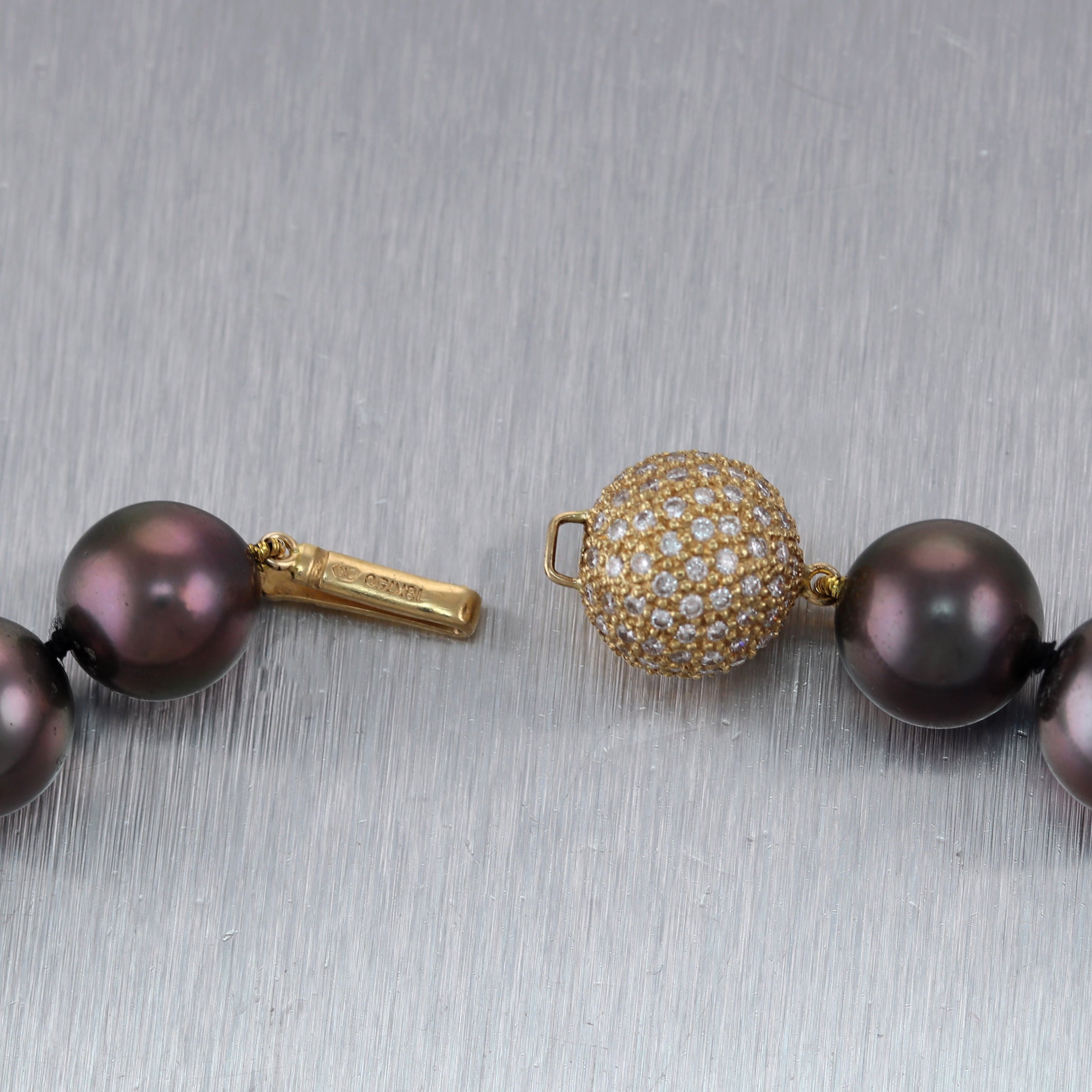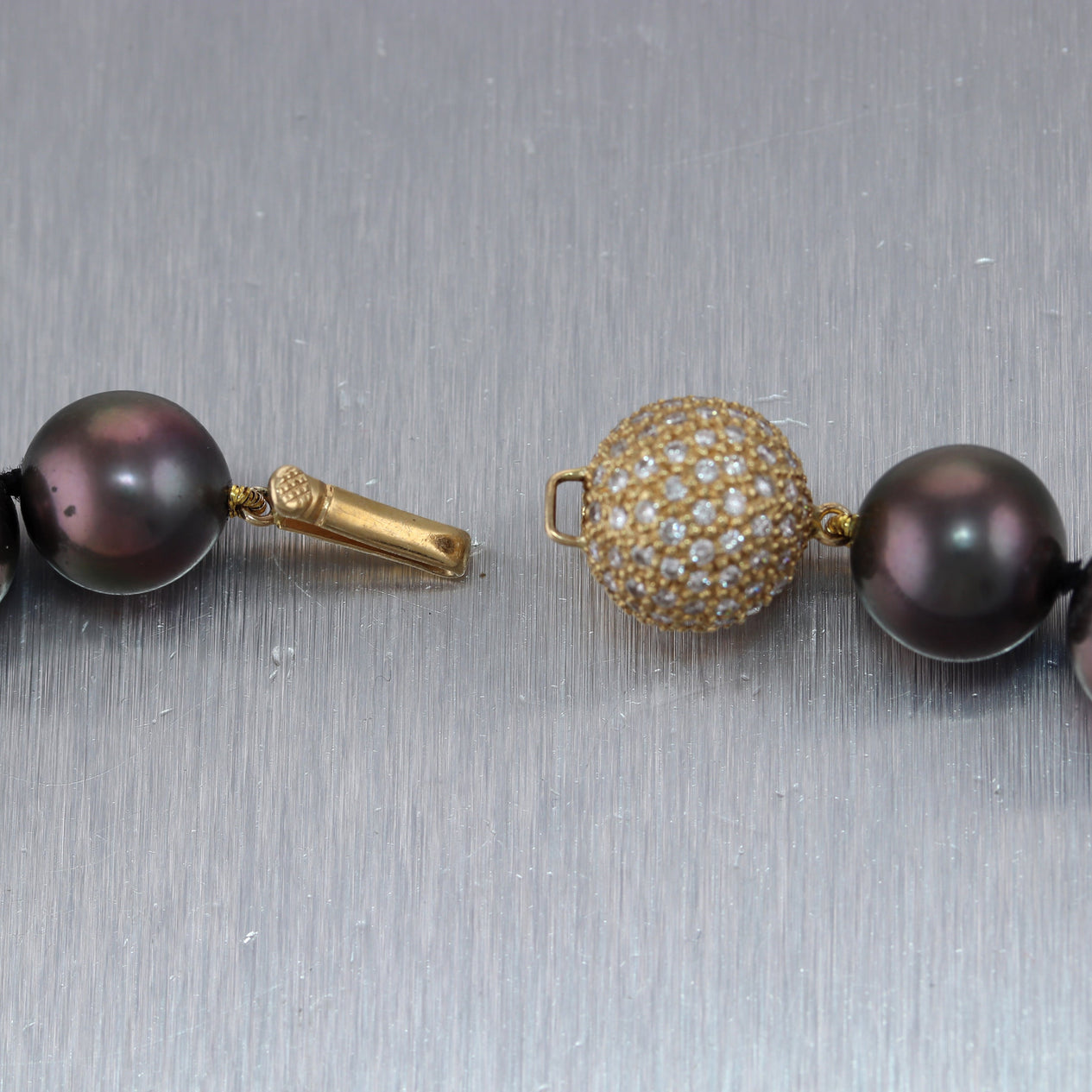 Modern 18k Yellow Gold Black Tahitian Pearl 16" Necklace