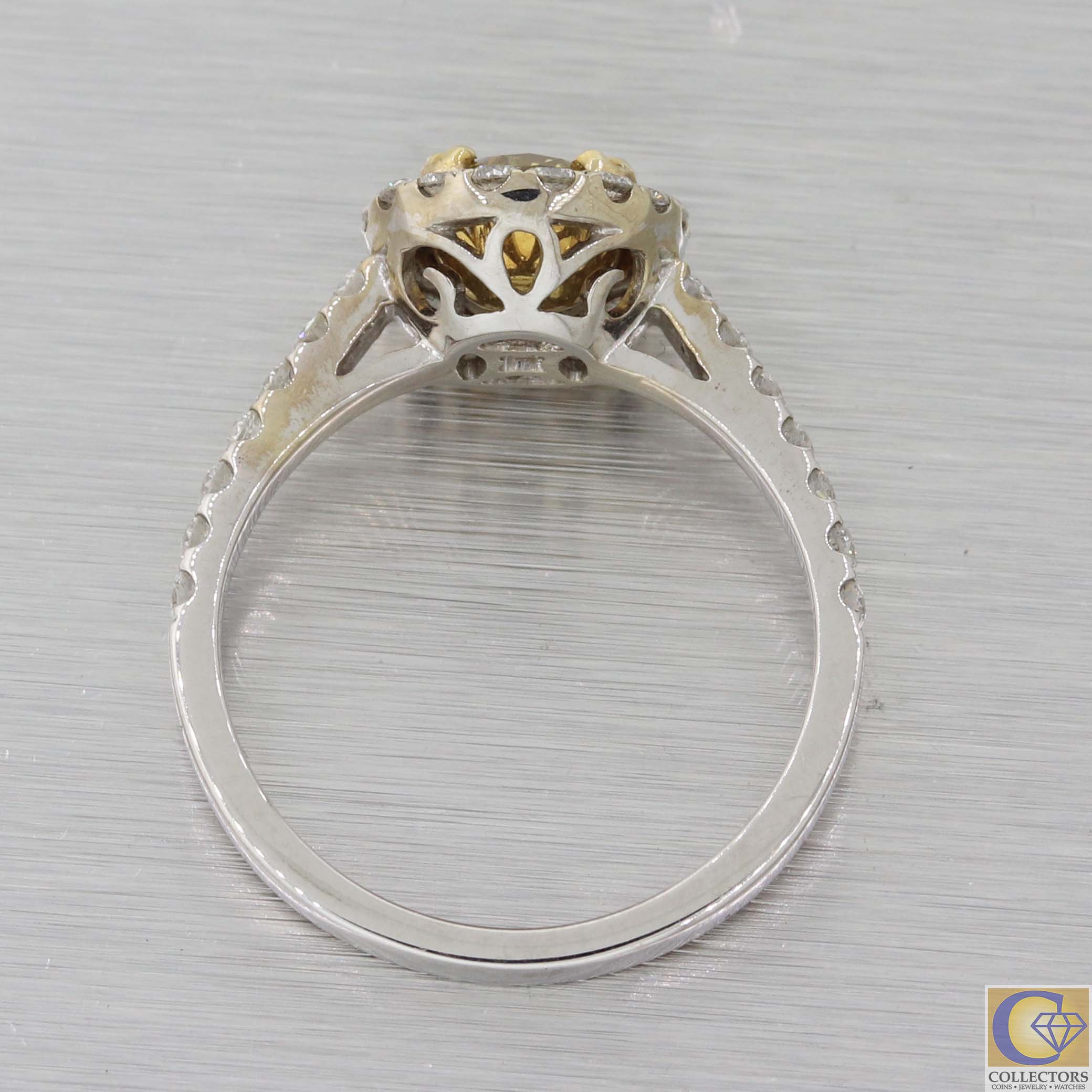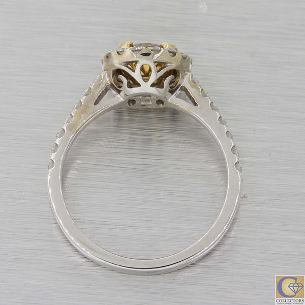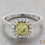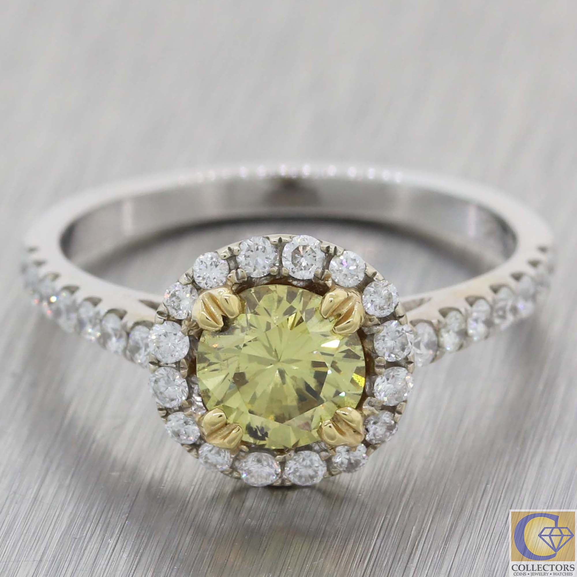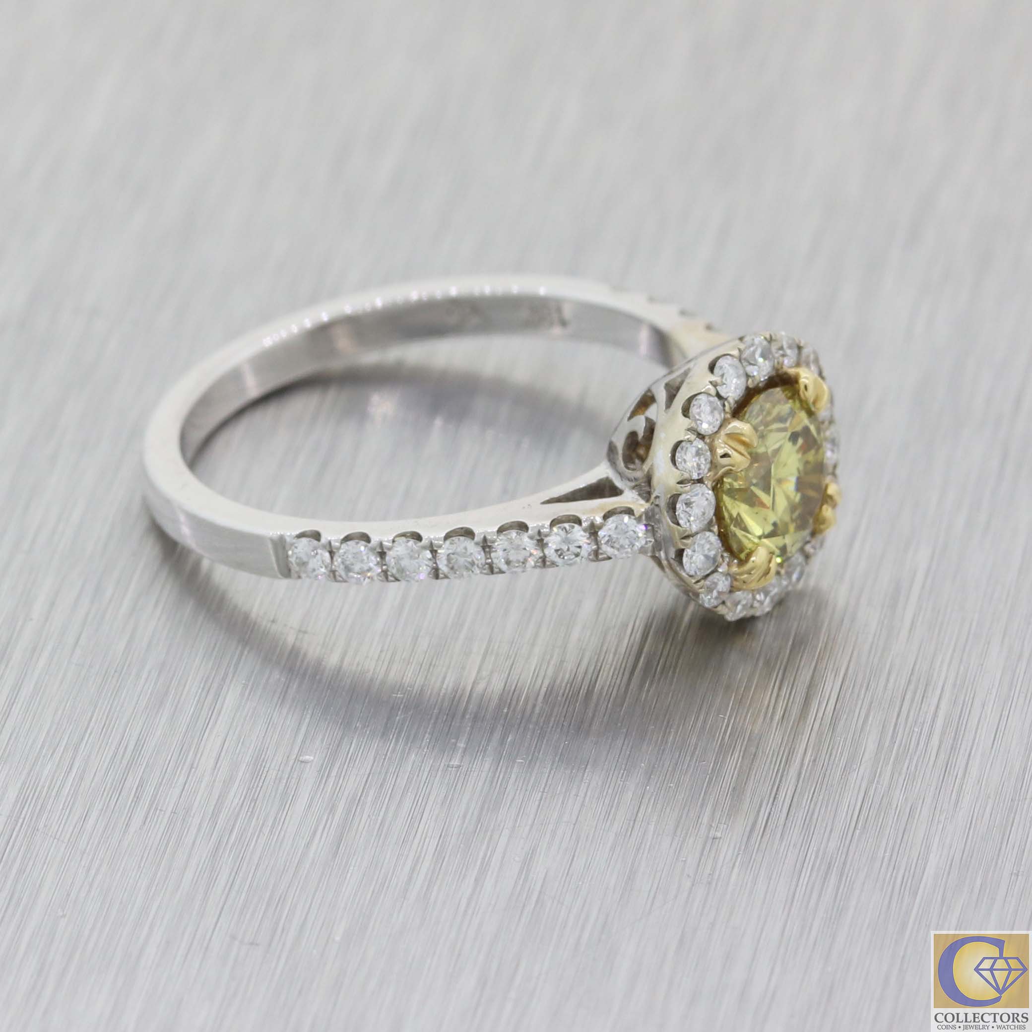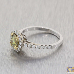 This is a beautiful Modern Estate 18k White Gold 1.45ctw Fancy Yellow Diamond Halo Engagement Ring. It will come in a lovely ring box for a perfect presentation and our unconditional 30 day money back return policy.