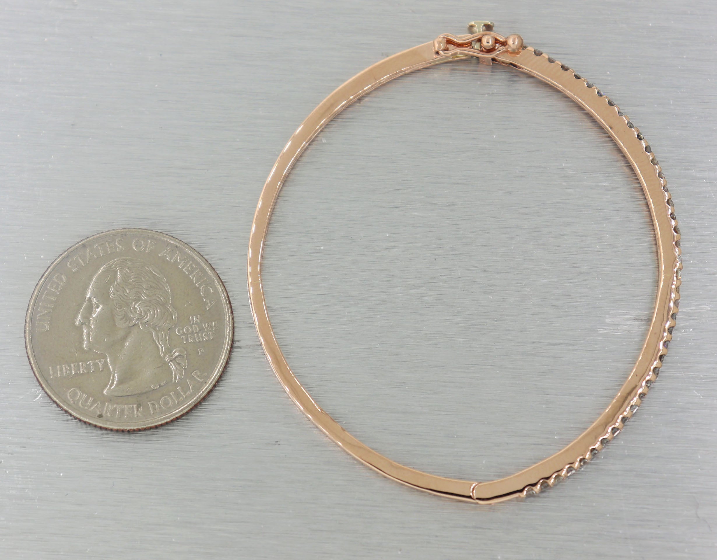 For your consideration, an authentic Solid 14k Rose Gold .80ctw Diamond 2mm Bangle Bracelet. It will come professionally packaged in a beautiful gift presentation box and with our unconditional 30 day money back guarantee. G8