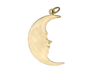 Modern Italian 18K 750 Yellow Gold Celestial Crescent Moon Face Pendant 4.1gr