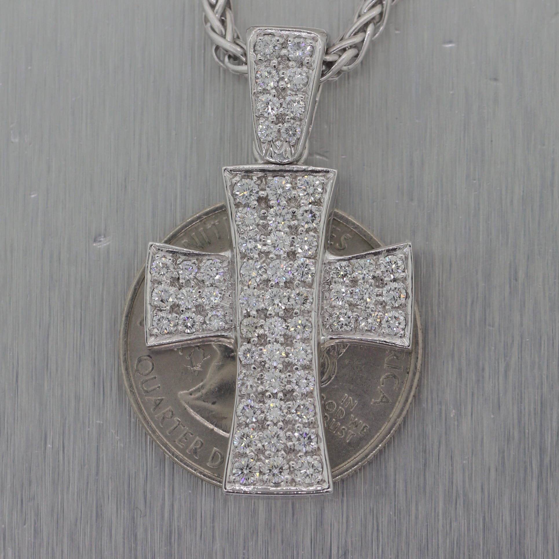 For your consideration, an authentic Modern Platinum 2ctw Diamond Cross Pendant 17" Necklace. This piece will come professionally packaged in a beautiful Collectors Coins & Jewelry gift presentation box. B0