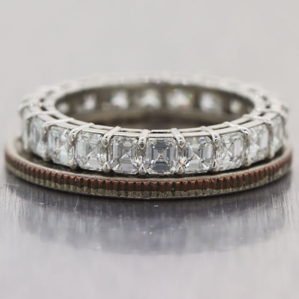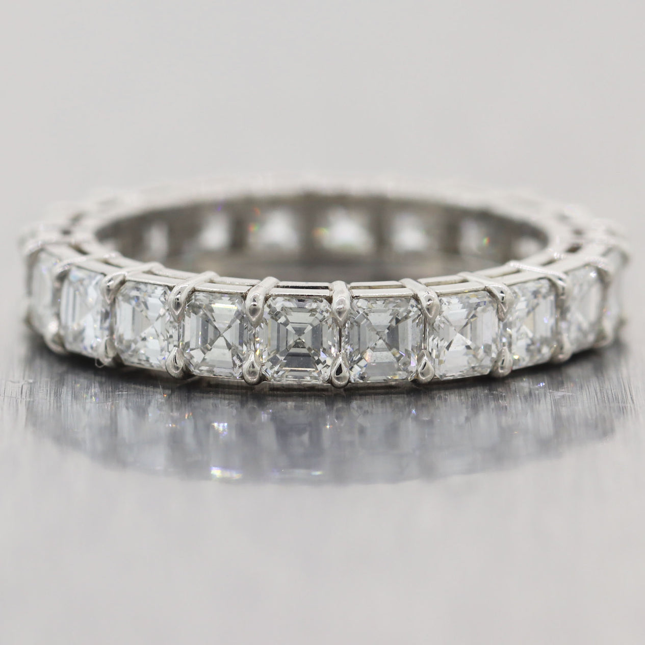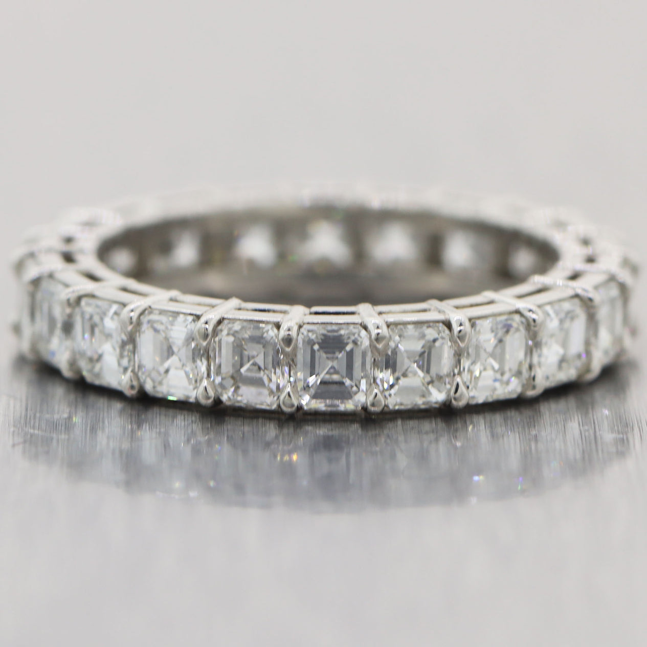 For your consideration, an authentic Modern Platinum 3.27ctw Ascher Cut Diamond Wedding Band Ring. It will come in a lovely ring box for a perfect presentation and our unconditional 30 day money back return policy. I9