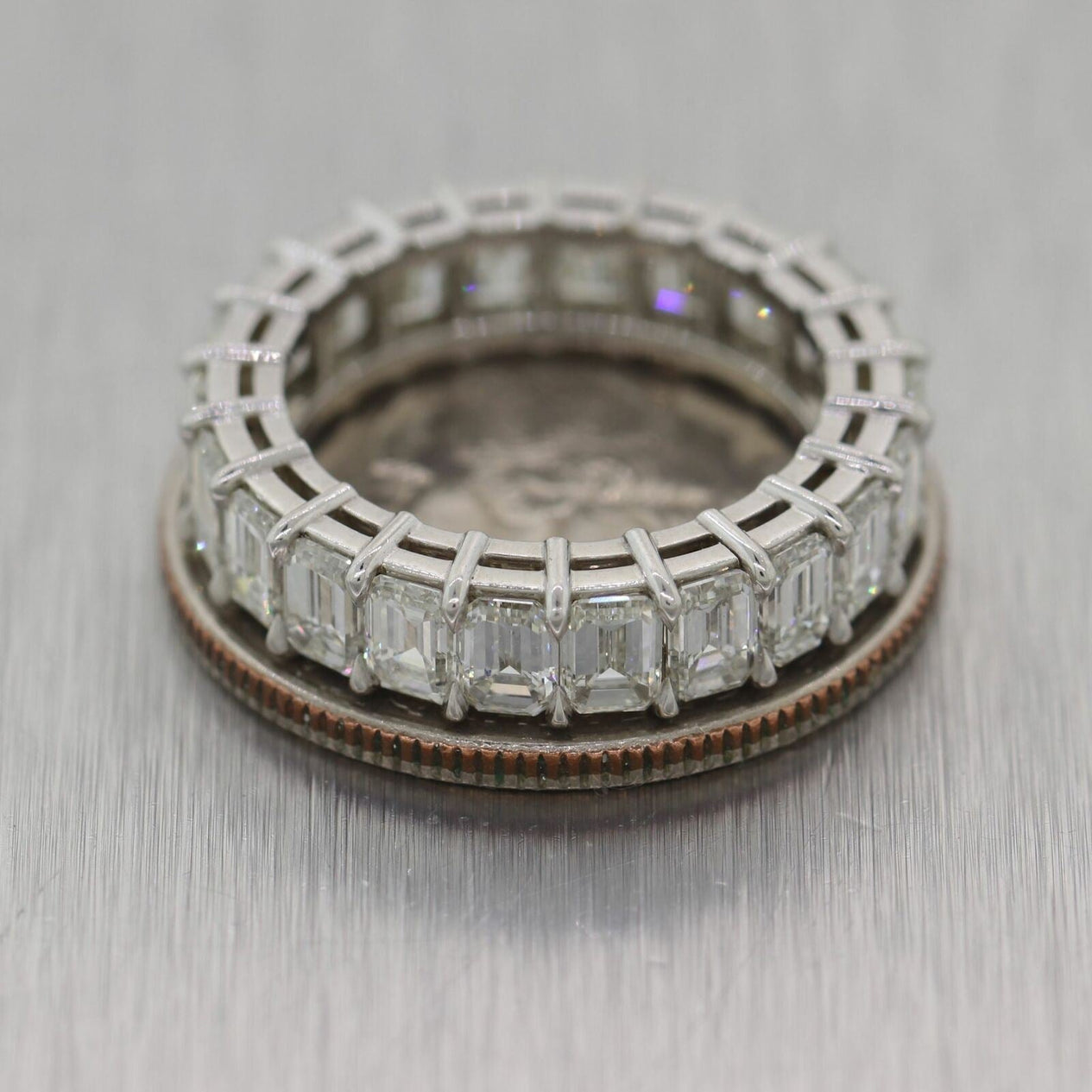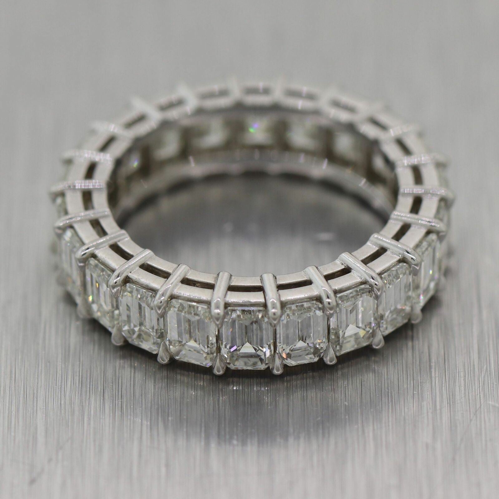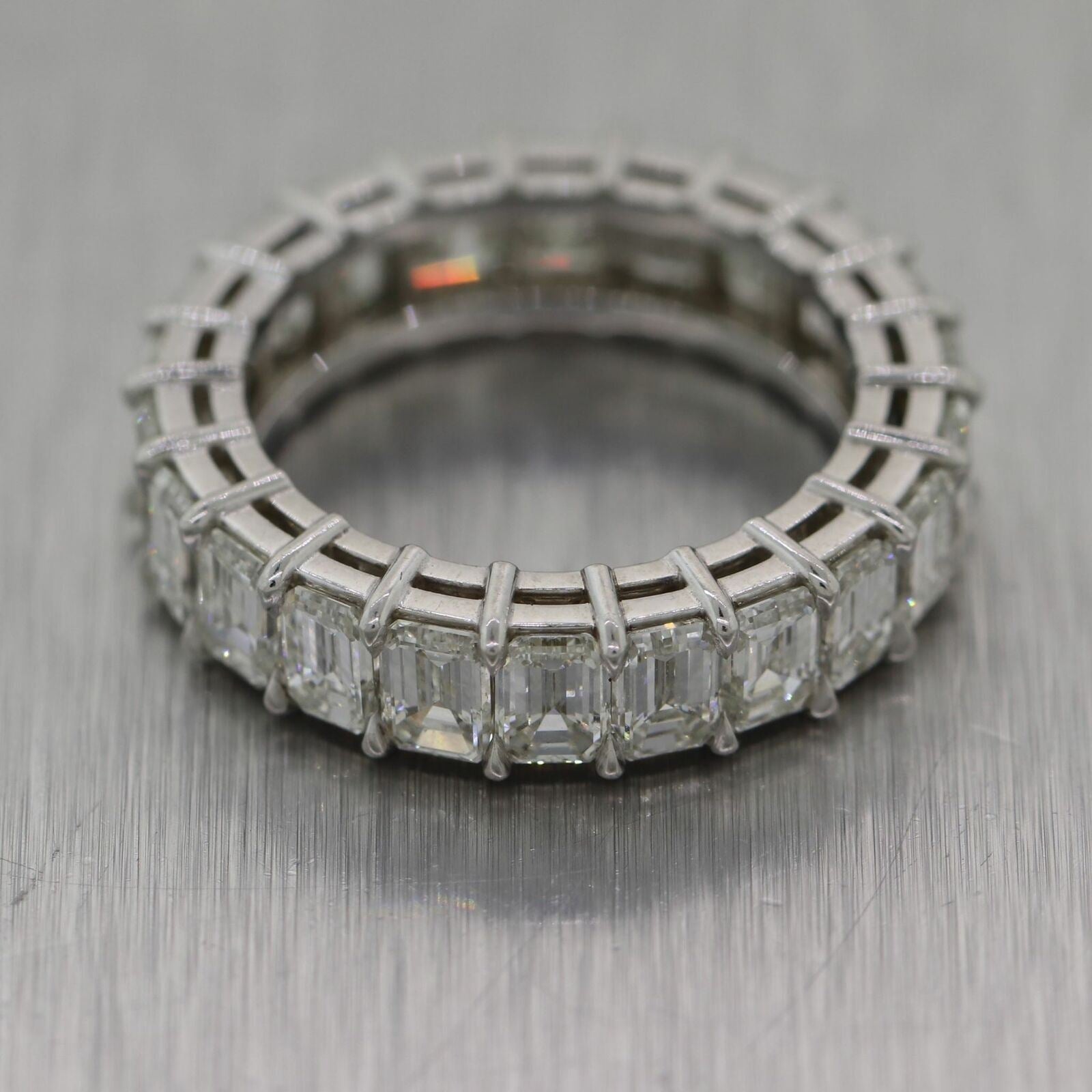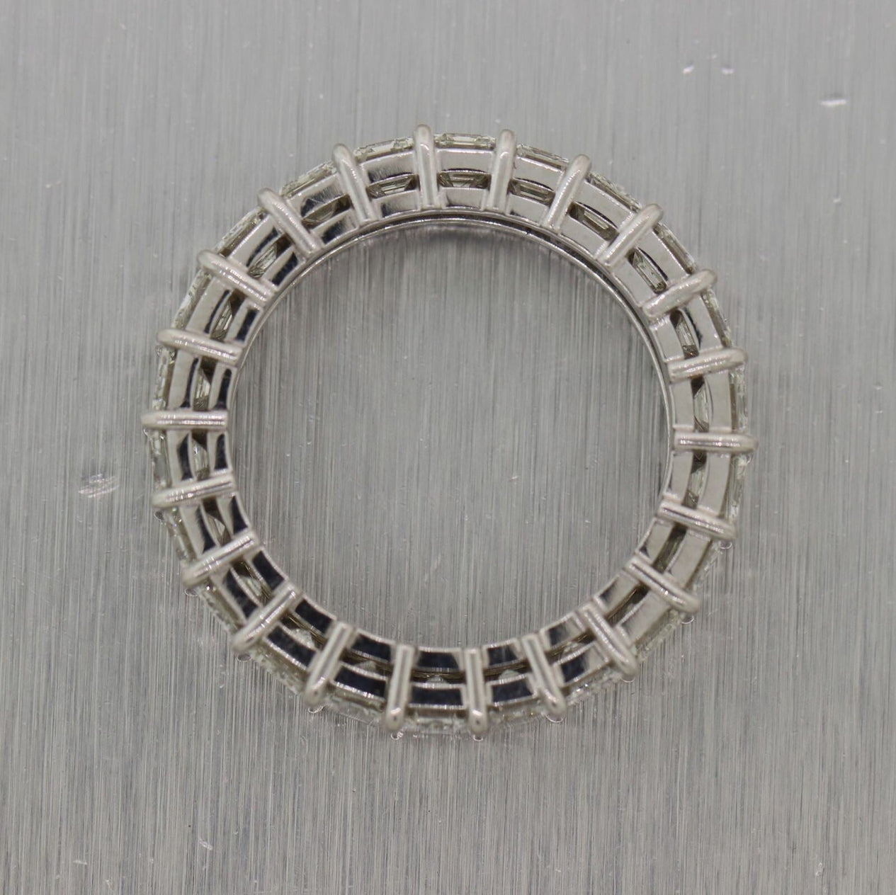 For your consideration, an authentic Modern Platinum 5.47ctw Emerald Cut Diamond Eternity Band Ring. This piece will come in a lovely ring box for a perfect presentation and our unconditional 30 day money back return policy. L9