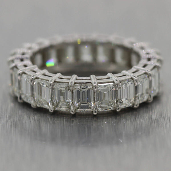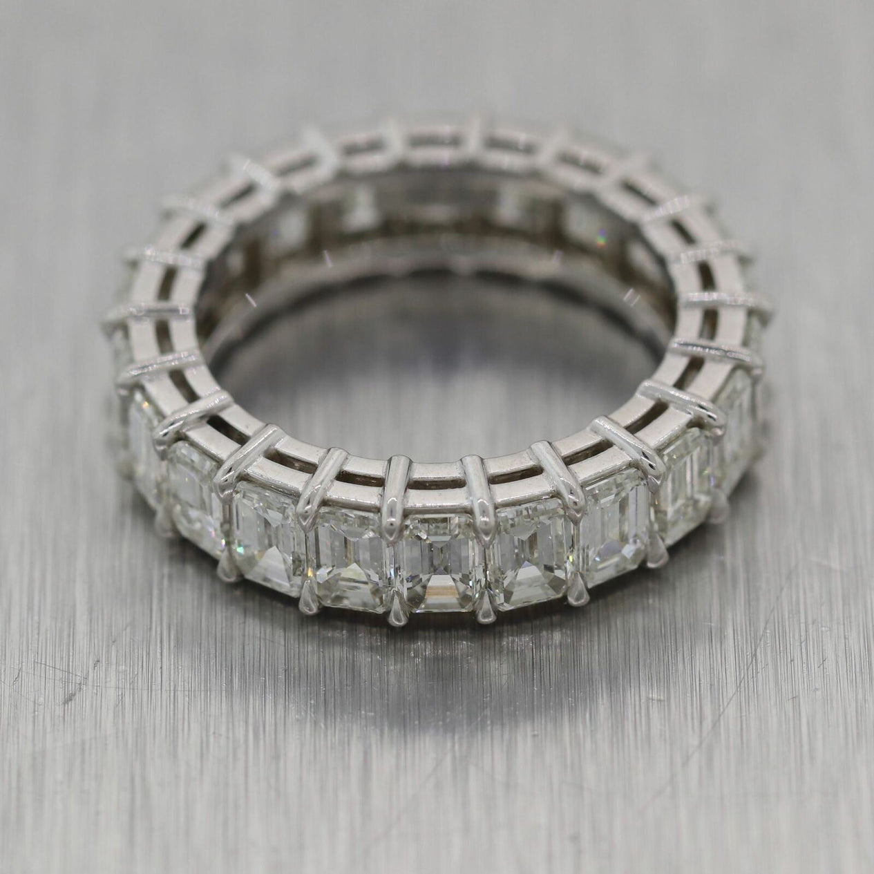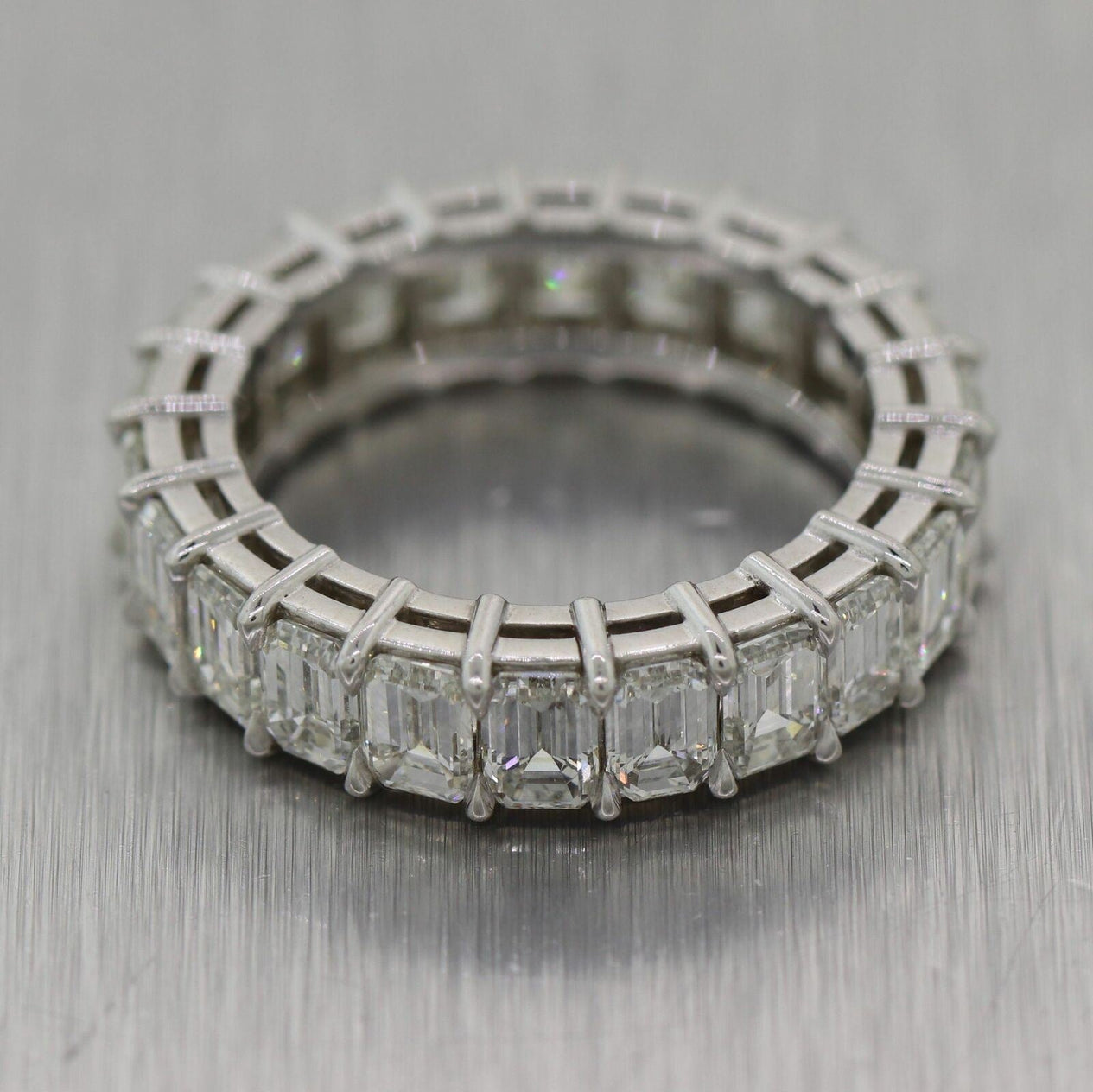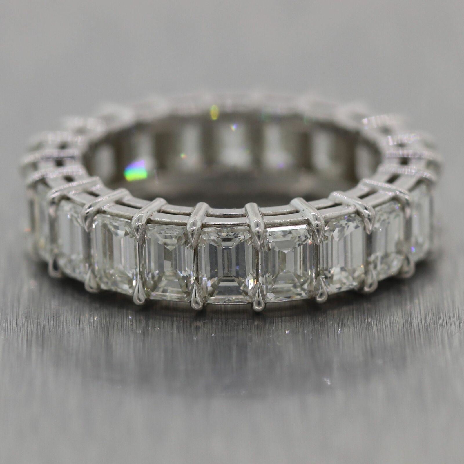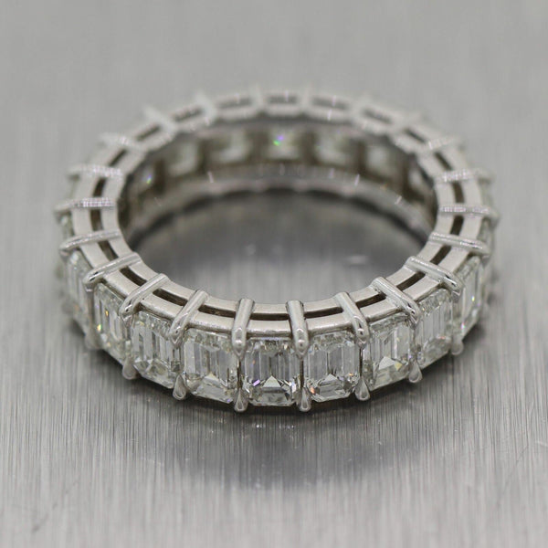 For your consideration, an authentic Modern Platinum 5.47ctw Emerald Cut Diamond Eternity Band Ring. This piece will come in a lovely ring box for a perfect presentation and our unconditional 30 day money back return policy. L9