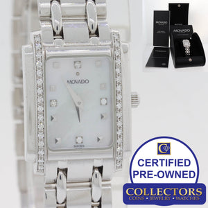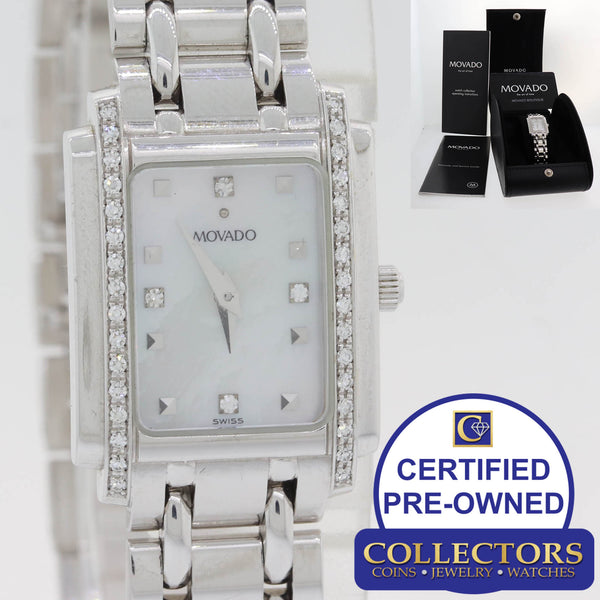 Movado Sika 66-25-0640 14k White Gold 19mm Quartz MOP Diamond Watch Papers S8