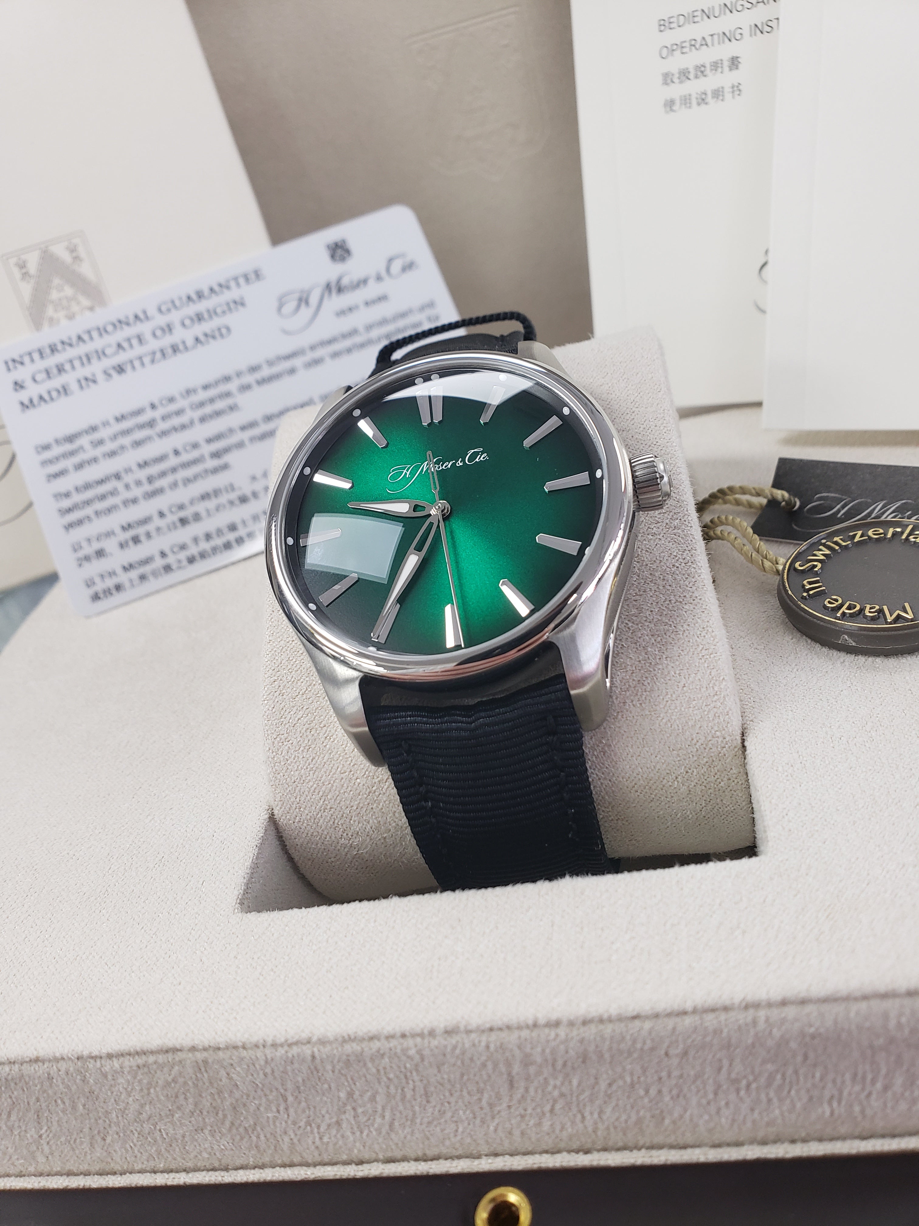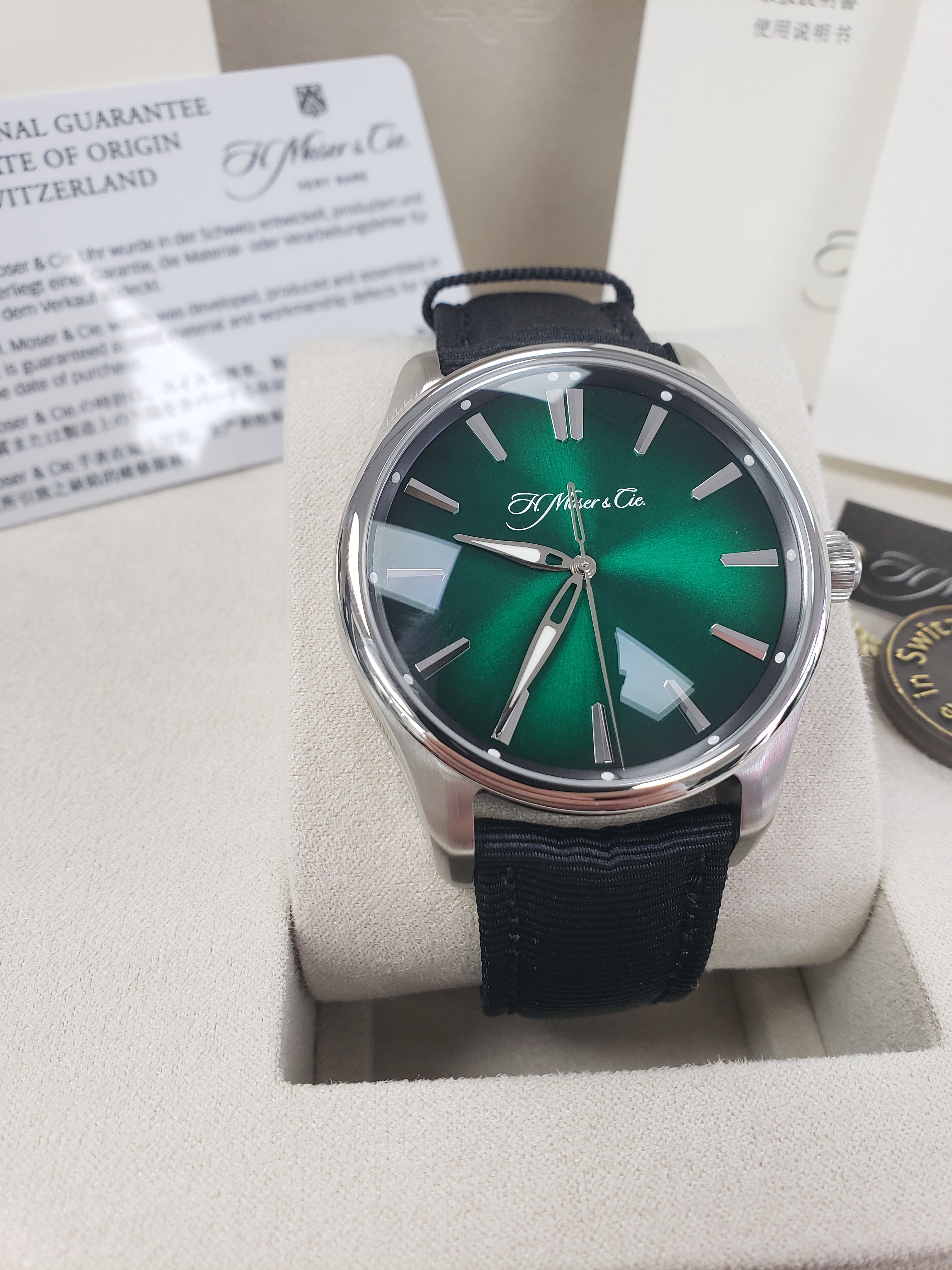 | Movement | Original H. Moser & Cie. Swiss Automatic Movement with a quickset date function |