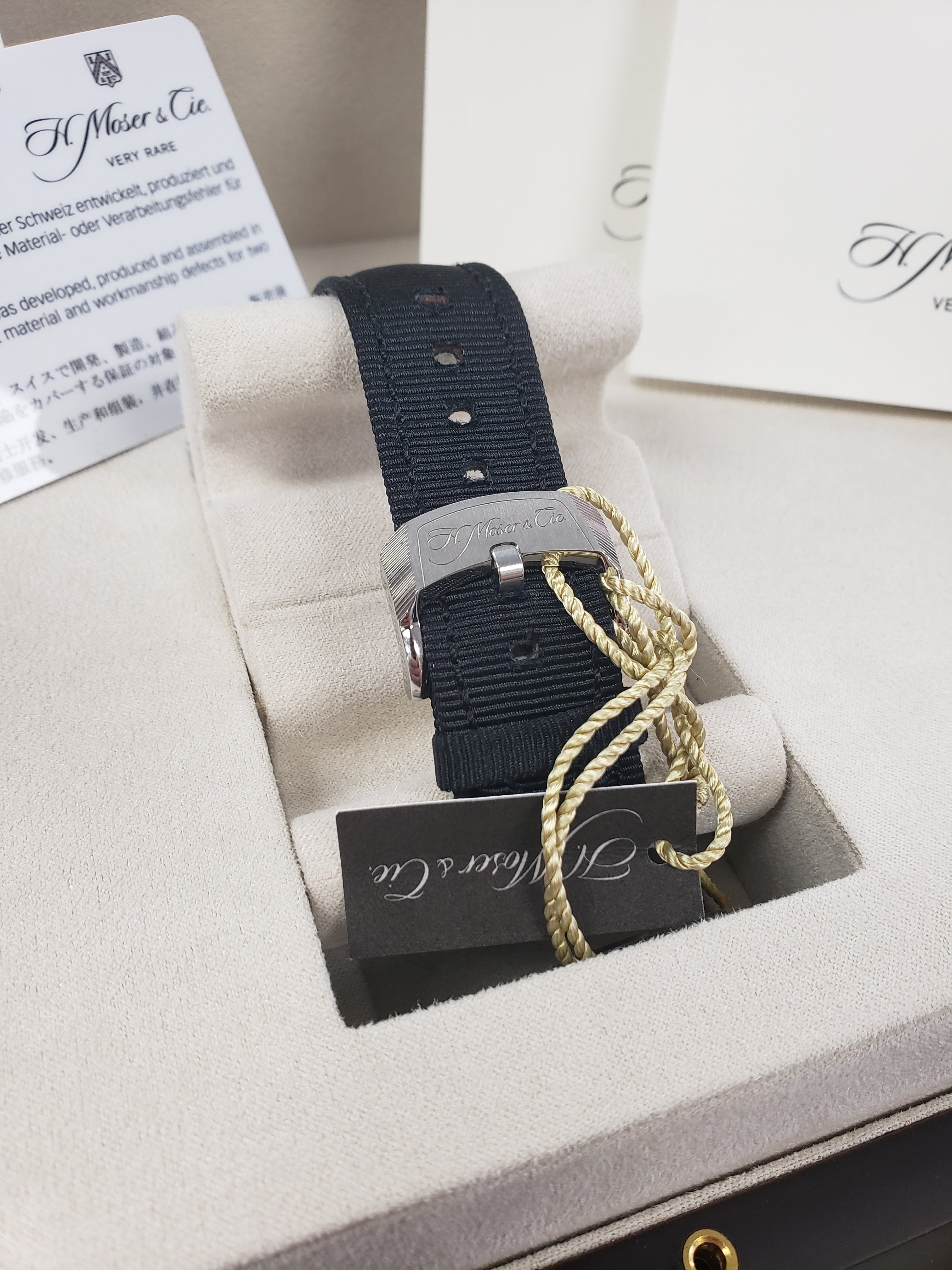 | Band | Original H. Moser & Cie. Fabric Strap with a Stainless Steel Tang Buckle. |