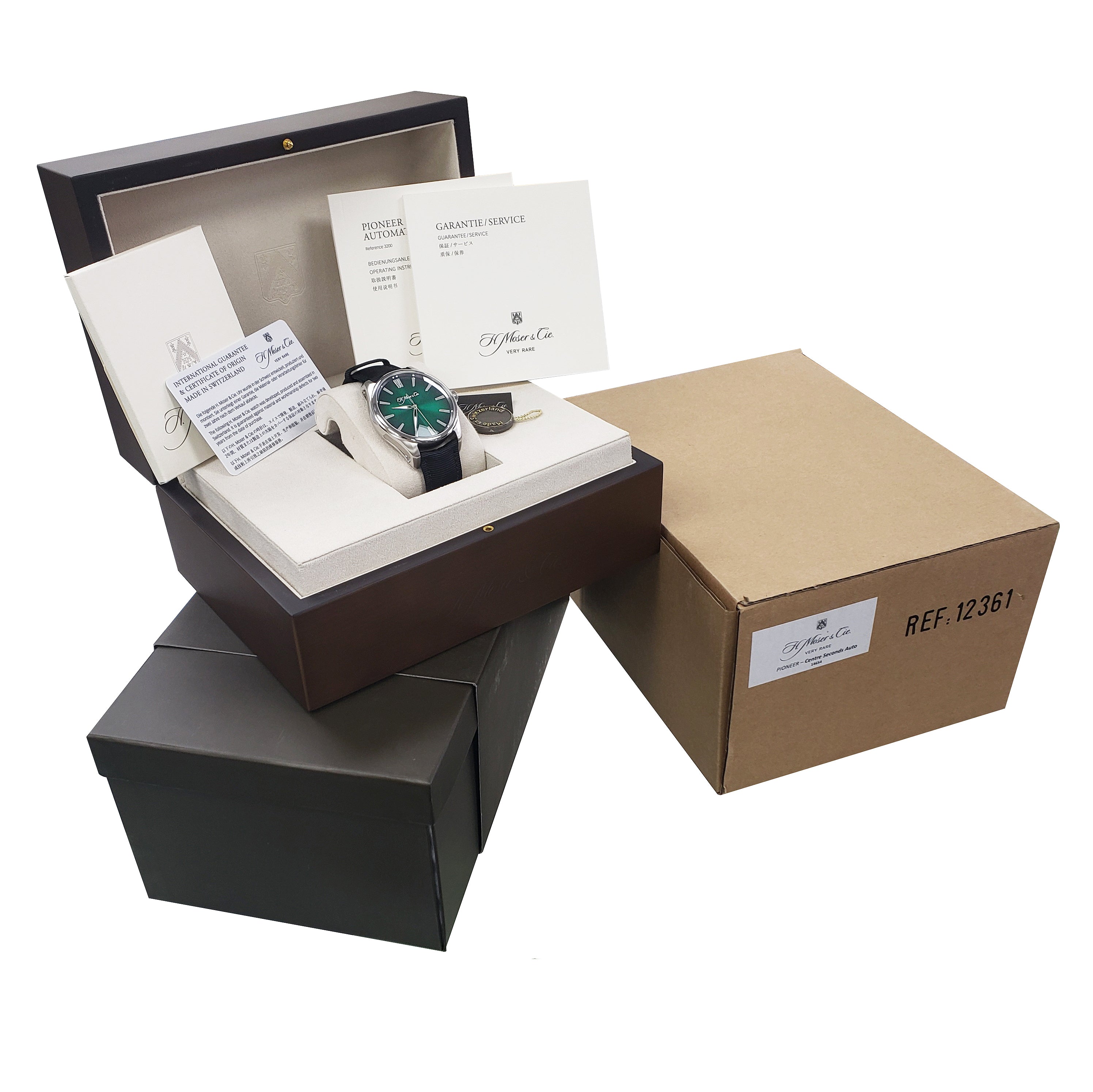 Yes, this item includes its original H. Moser & Cie. watch case and outer box. (Pictured) |