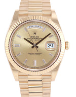 | Dial | Rolex Champagne Diamond Dial with the day at the 12 o'clock and the date at the 3 o'clock |