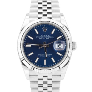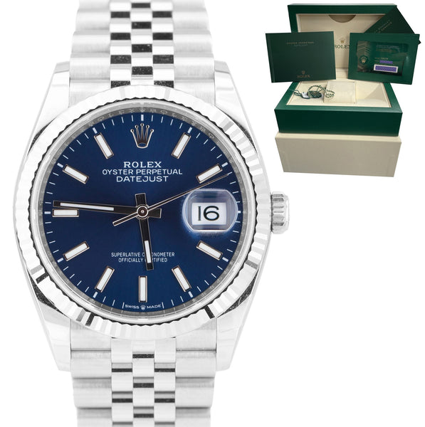 NEW 2021 Rolex DateJust Blue 36mm Fluted Steel White Gold Jubilee Watch 126234