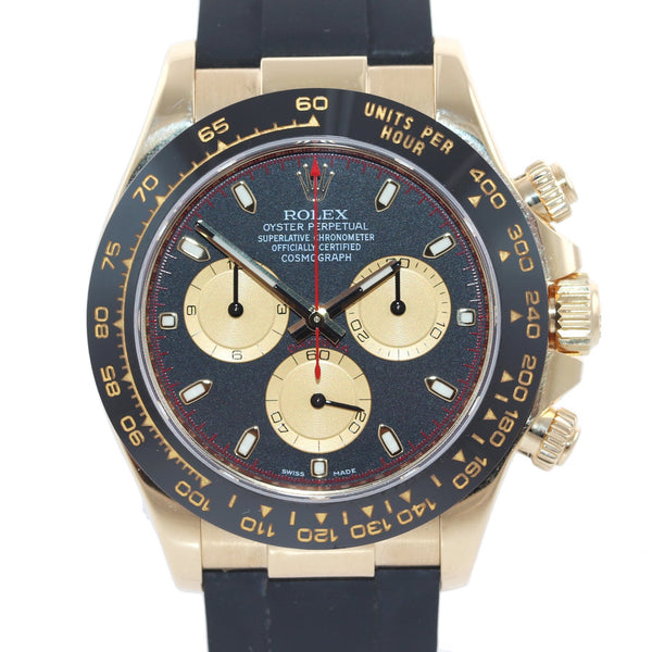 | Band | Original Rolex Oysterflex Rubber Strap with a Flip Lock extendable 18k Yellow Gold Deployment Clasp |