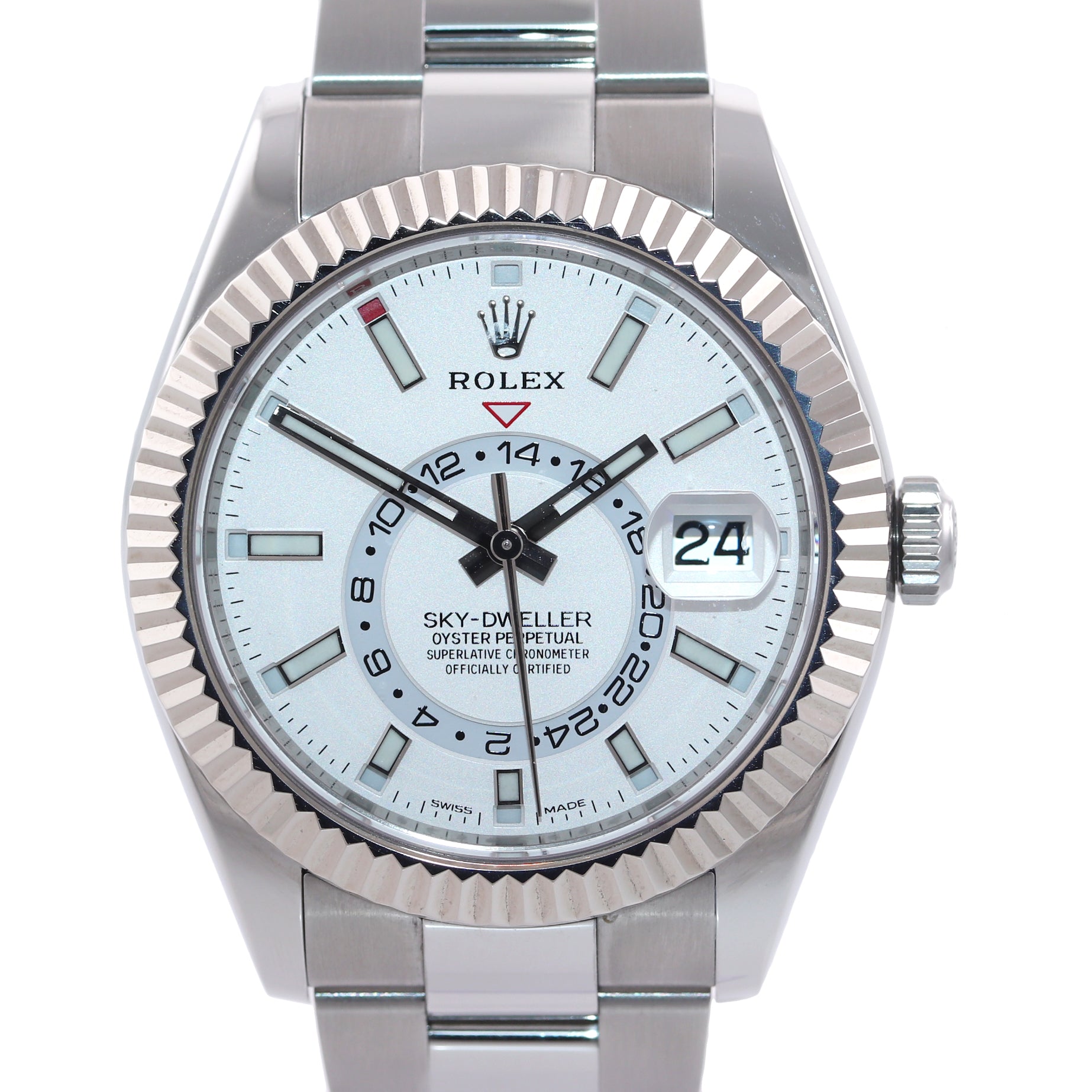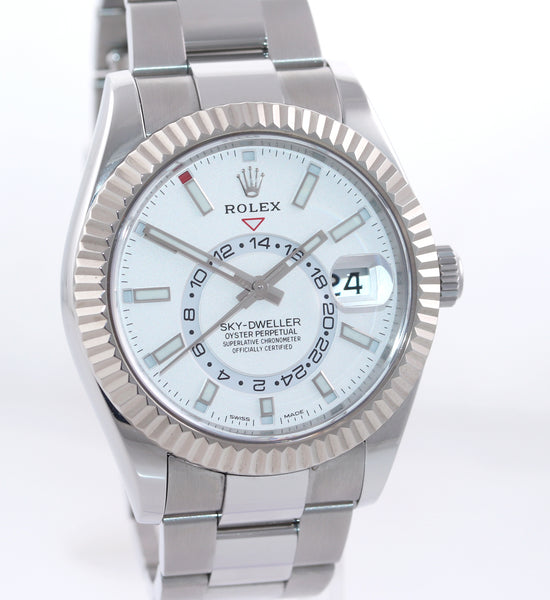 NEW 2021 Rolex Sky-Dweller Steel White Gold Fluted Bezel White 326934 42mm Watch