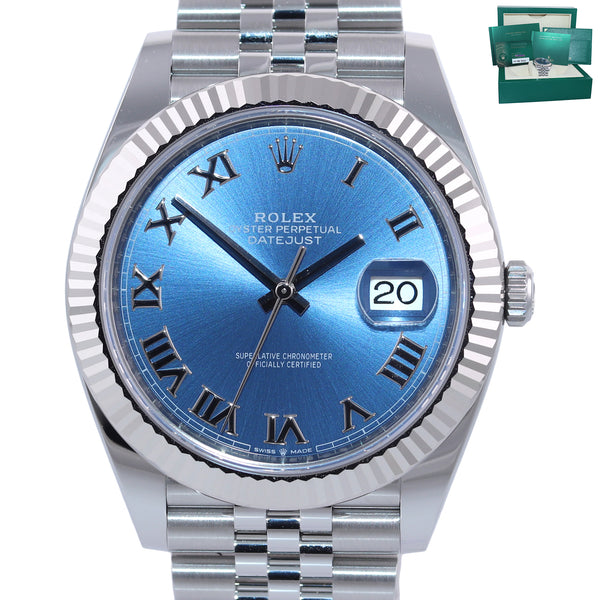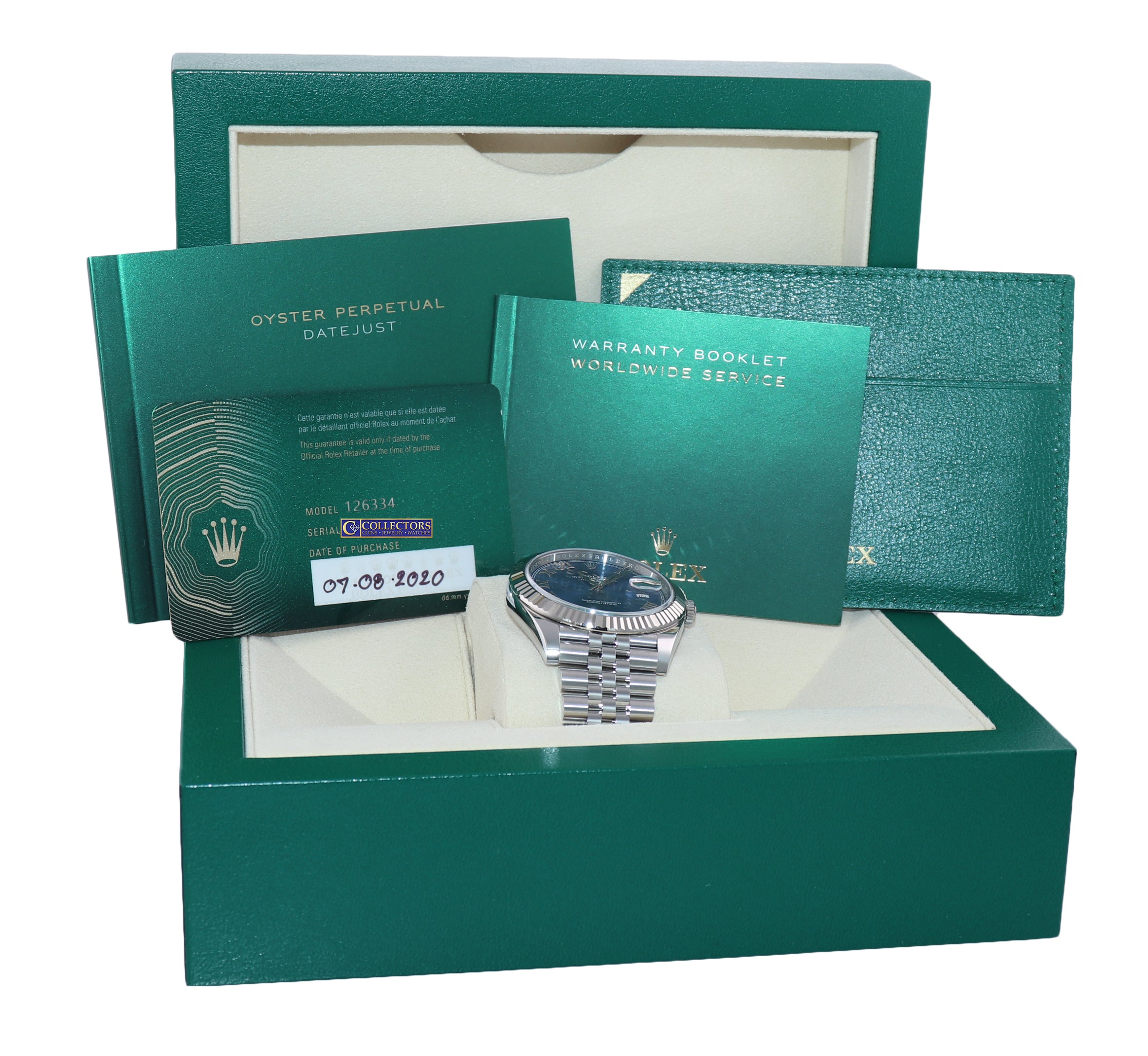 2020 NEW CARD PAPERS Rolex DateJust 41 Azzuro Blue Roman Jubilee Fluted 126334 Watch Collectors