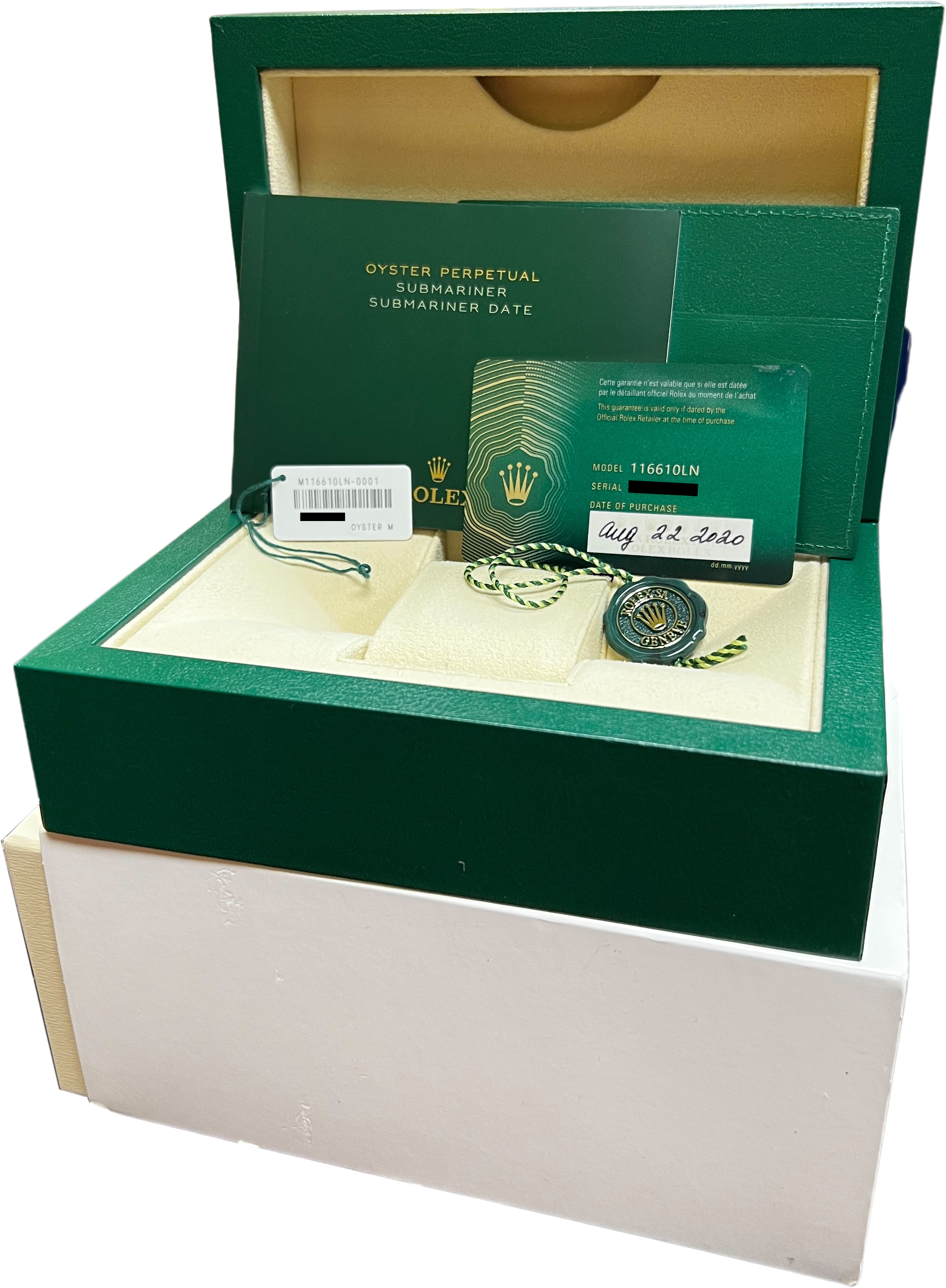 | Serial Number | Randomized Eight Digit Serial (The Rolex Warranty Card is dated AUGUST of 2020) |