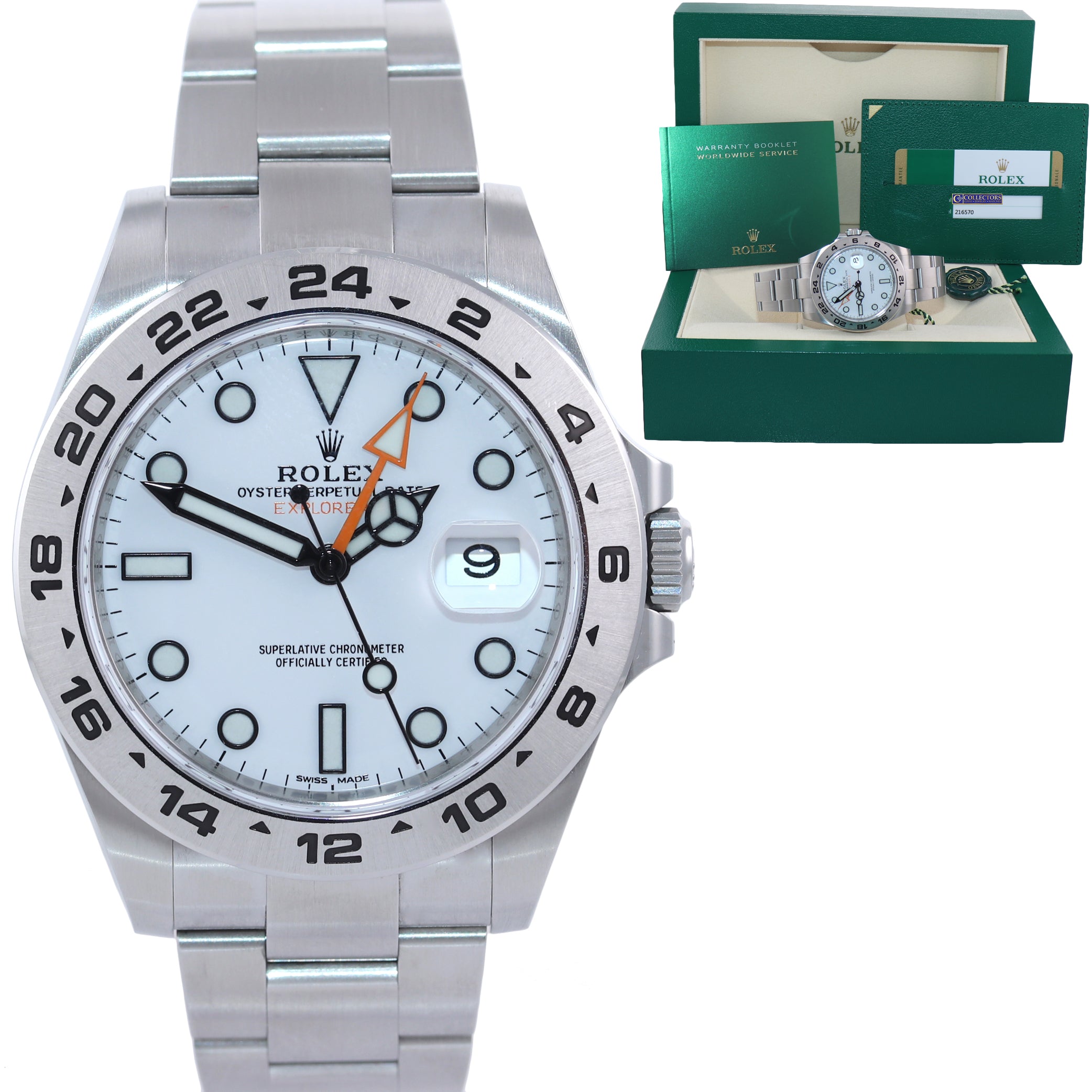 NEW PAPERS 2019 Rolex Explorer II 42mm 216570 White Polar Steel GMT Date Watch