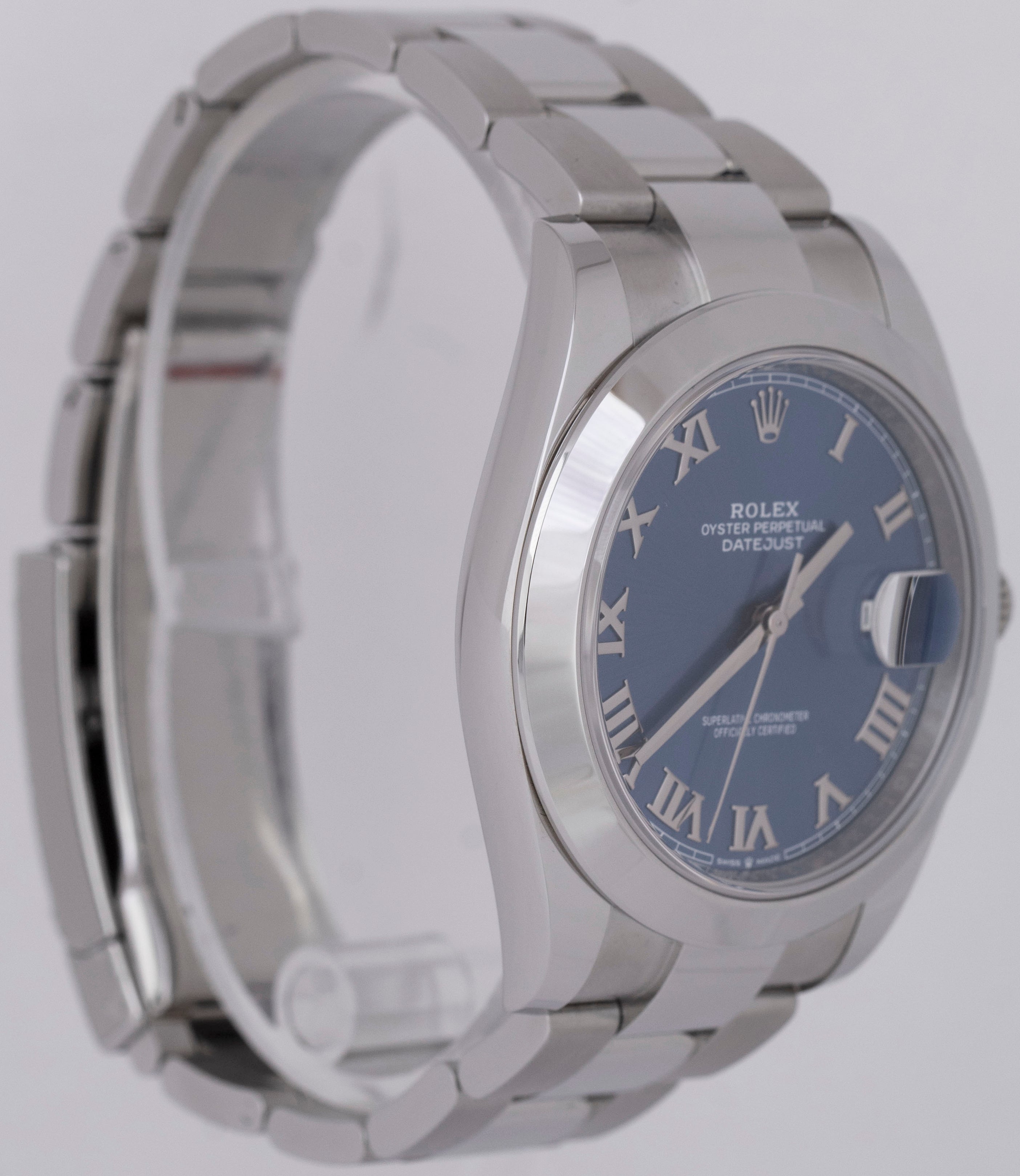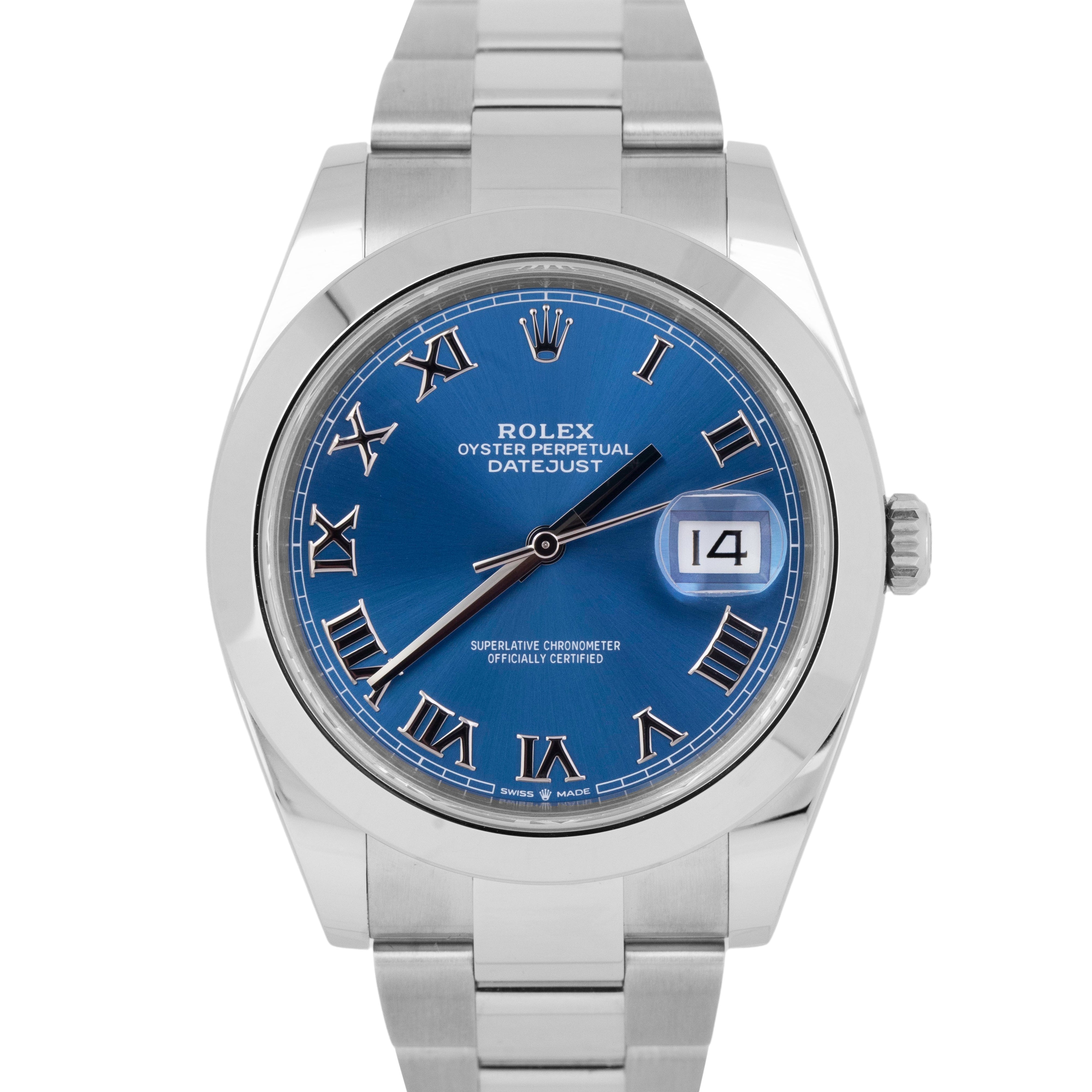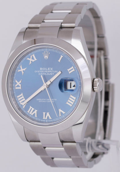 NEW PAPERS Rolex DateJust 41 Azzurro Blue Roman Steel Oyster Watch 126300 B+P