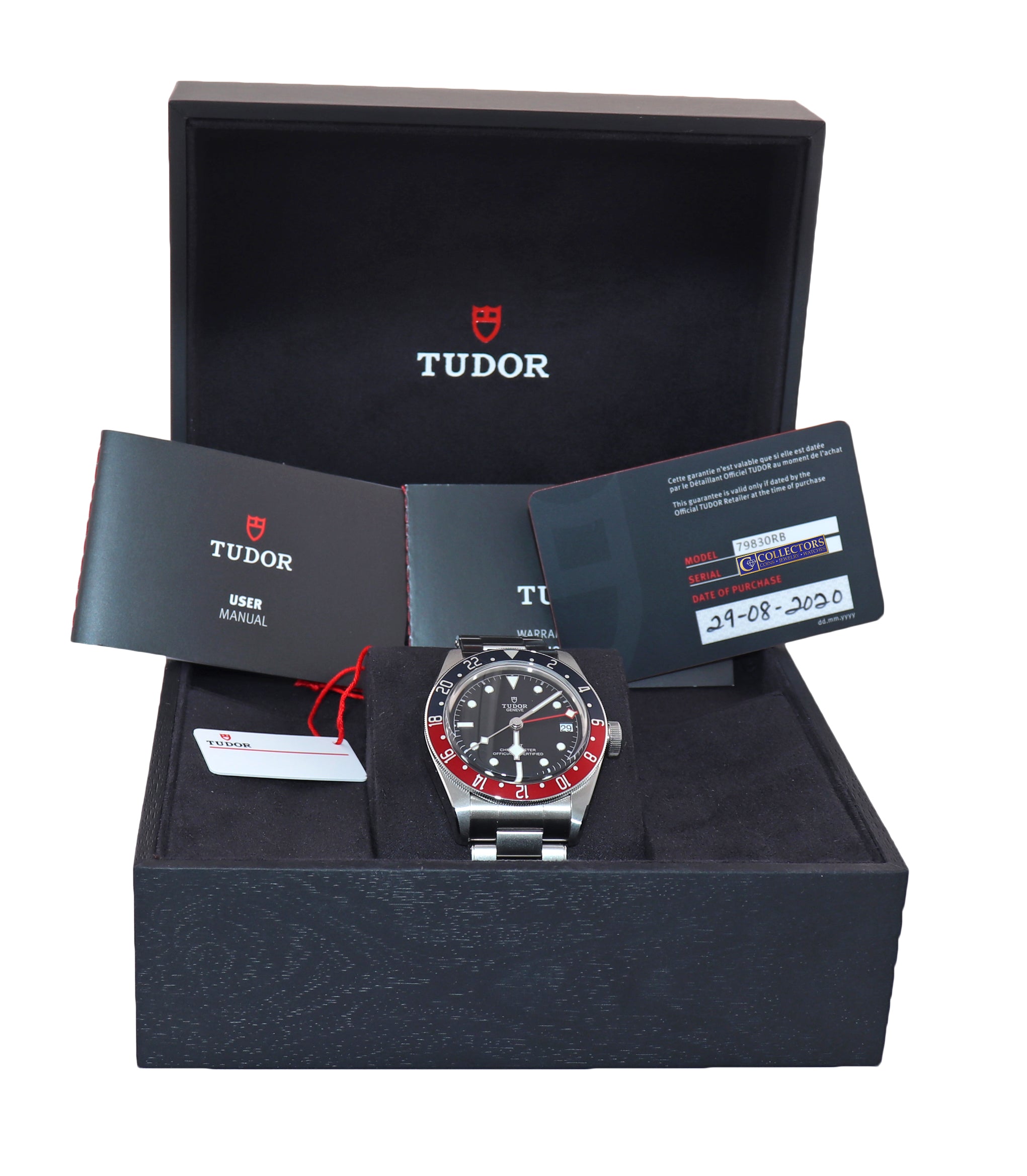 PAPERS NEW Tudor Black Bay GMT Pepsi Blue Red 79830RB 41mm Steel Bracelet Watch