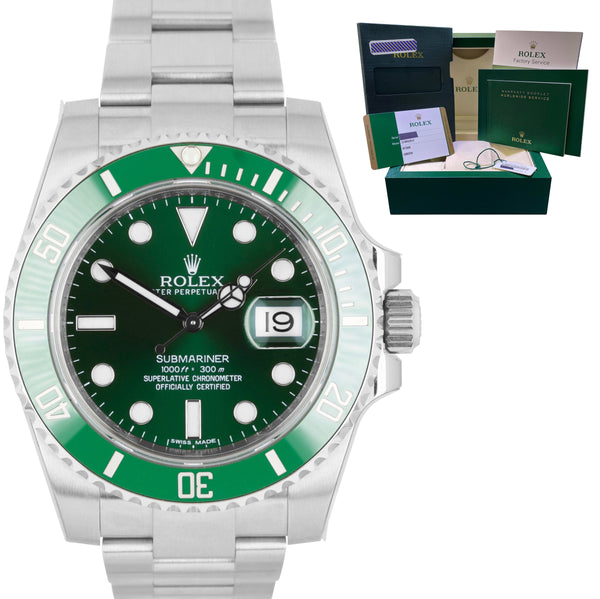 NEW STICKERED 2016 Rolex Submariner Date Hulk 116610 LV Green Ceramic 40mm Dive Watch