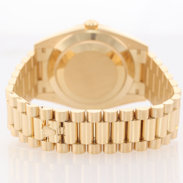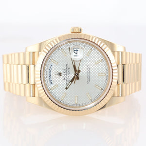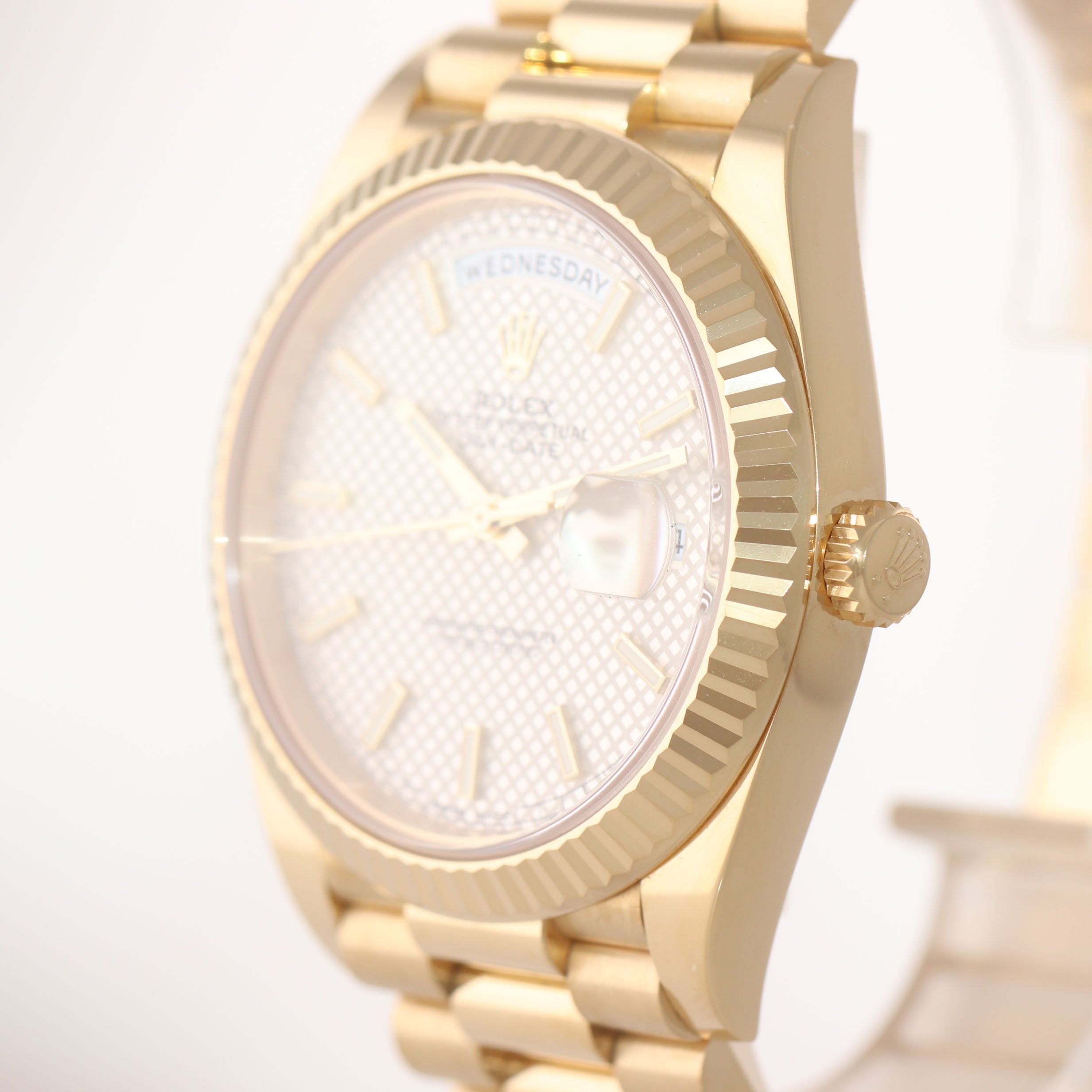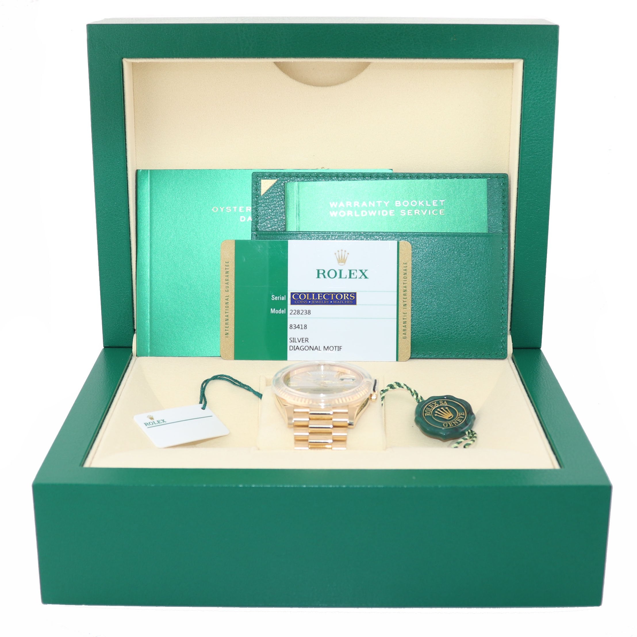 PAPERS NEW UNWORN 2019 Rolex Day-Date 40 President 228238 18k Gold Silver Motif Watch