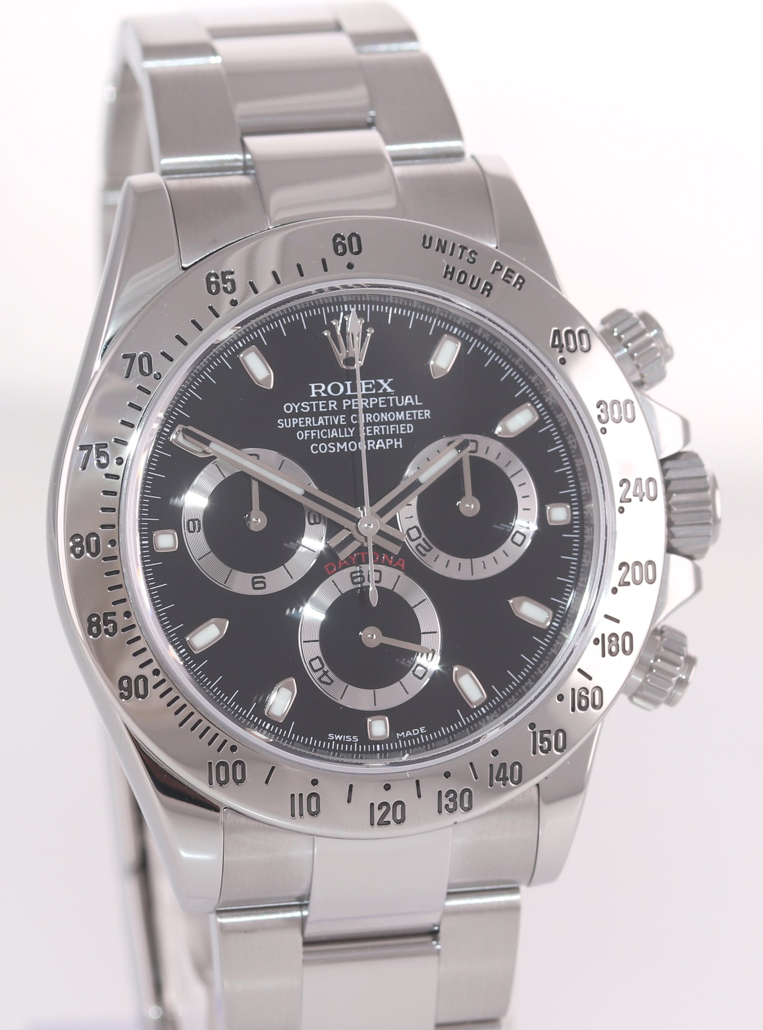 | Bezel | Original Rolex Fixed Stainless Steel Bezel with an engraved tachymetric scale |