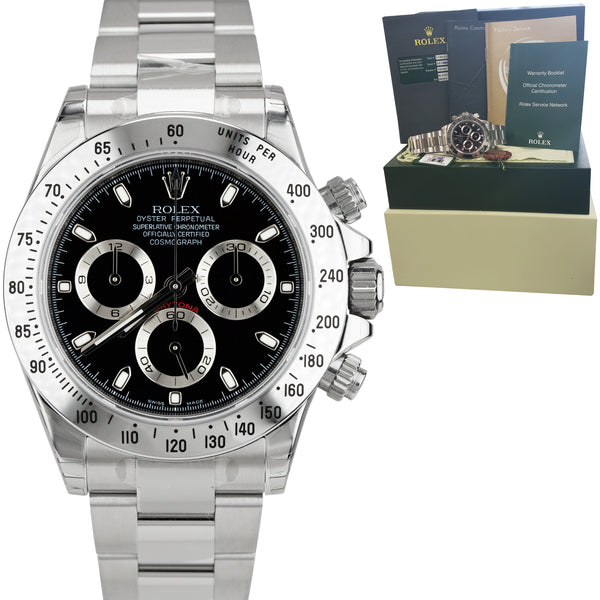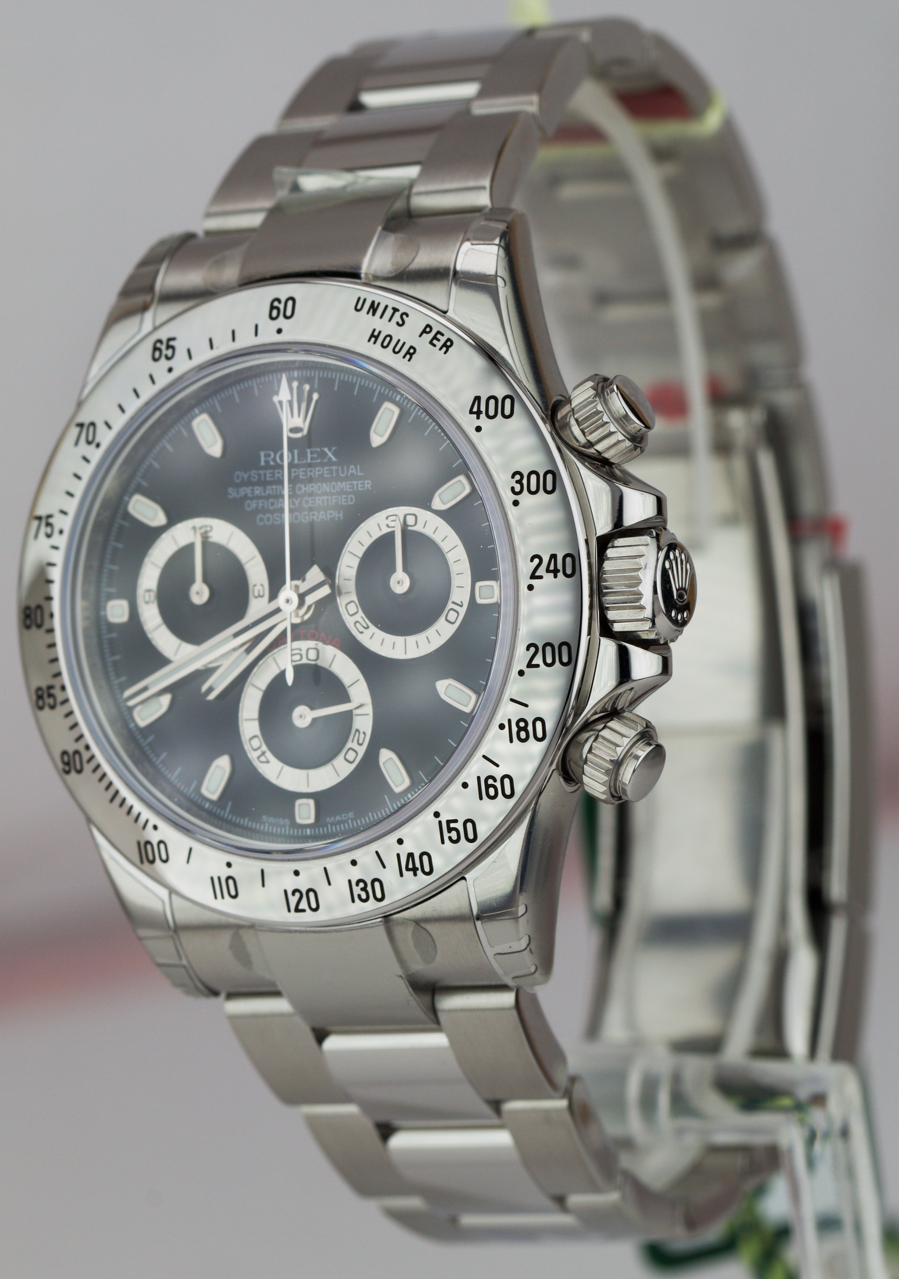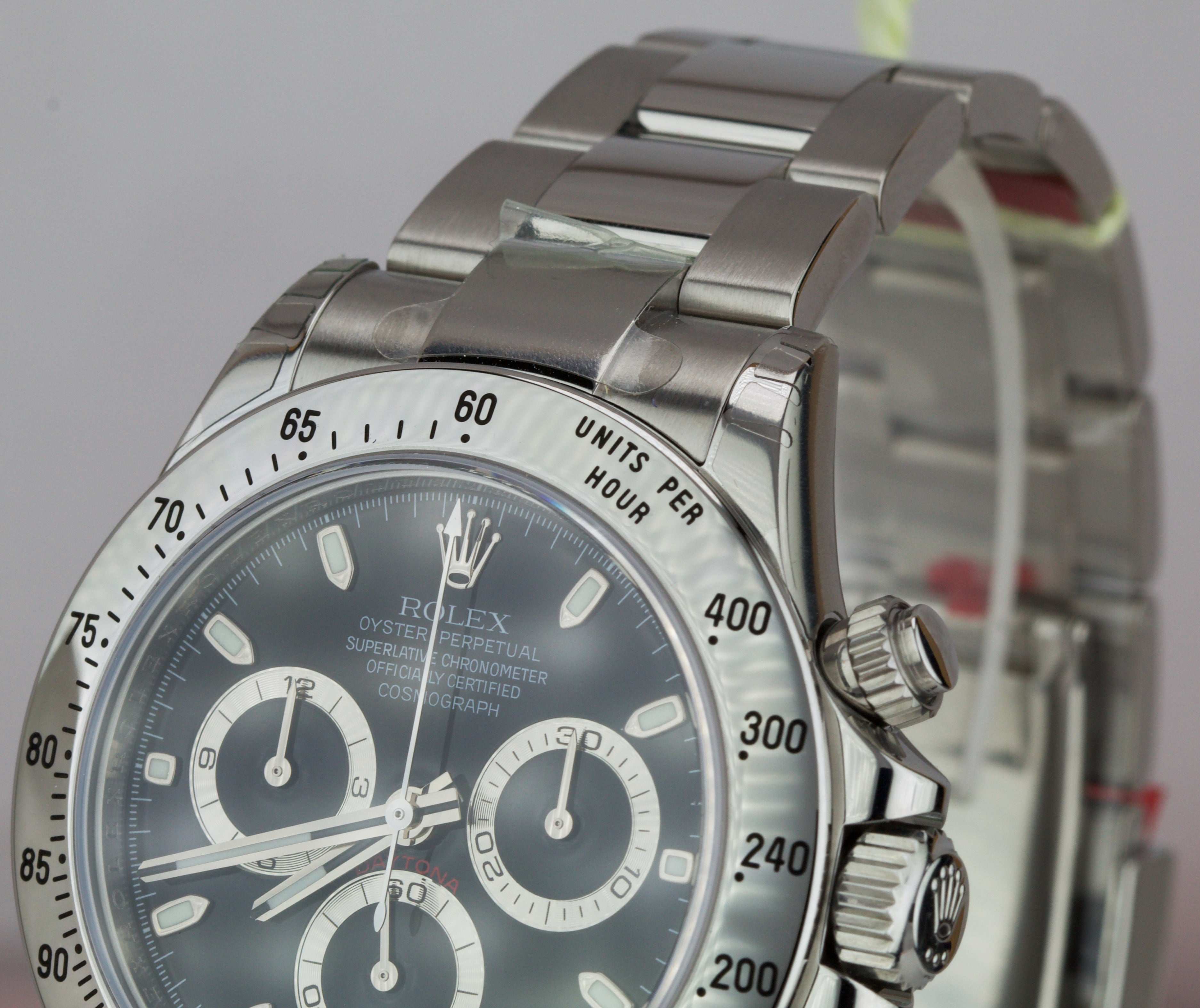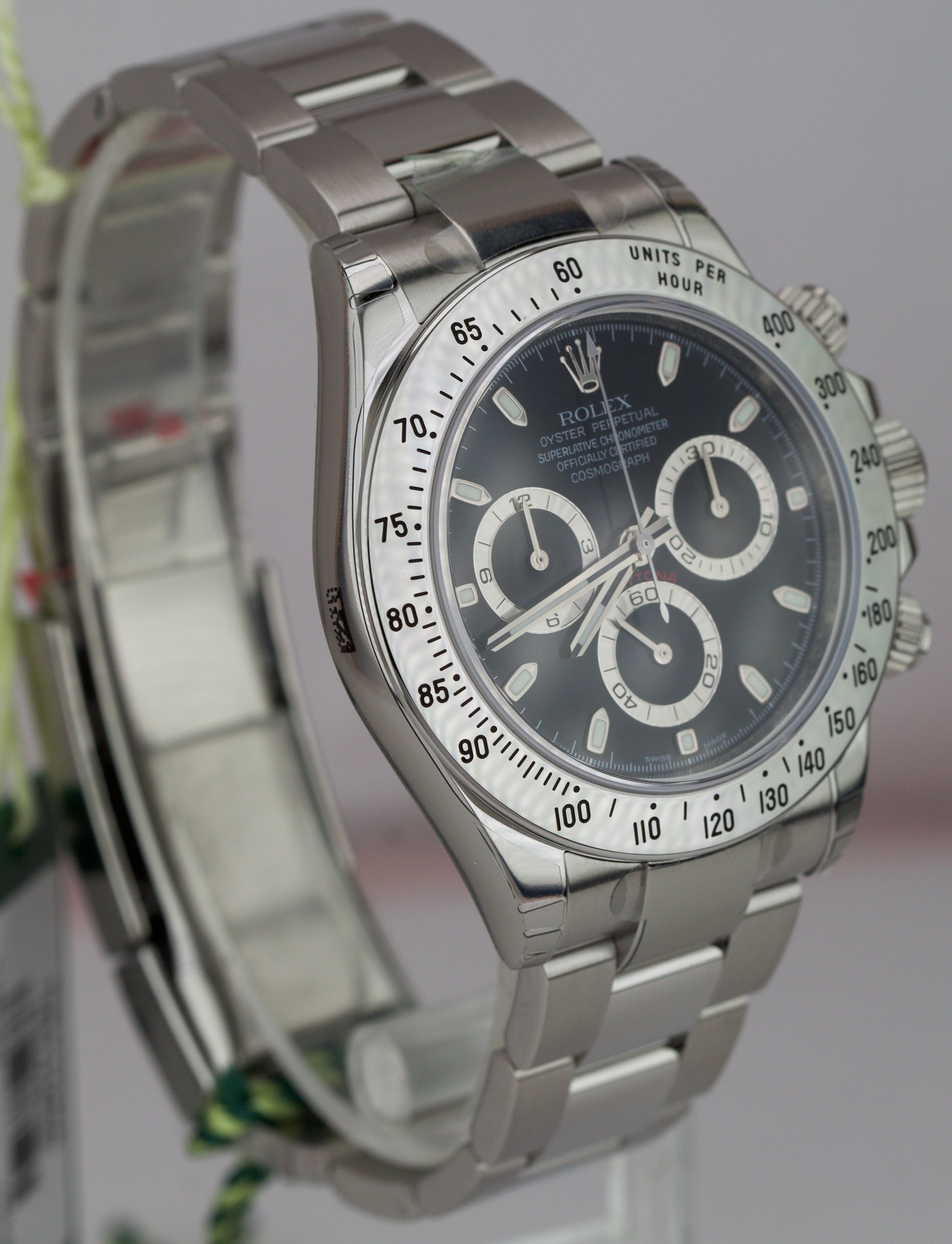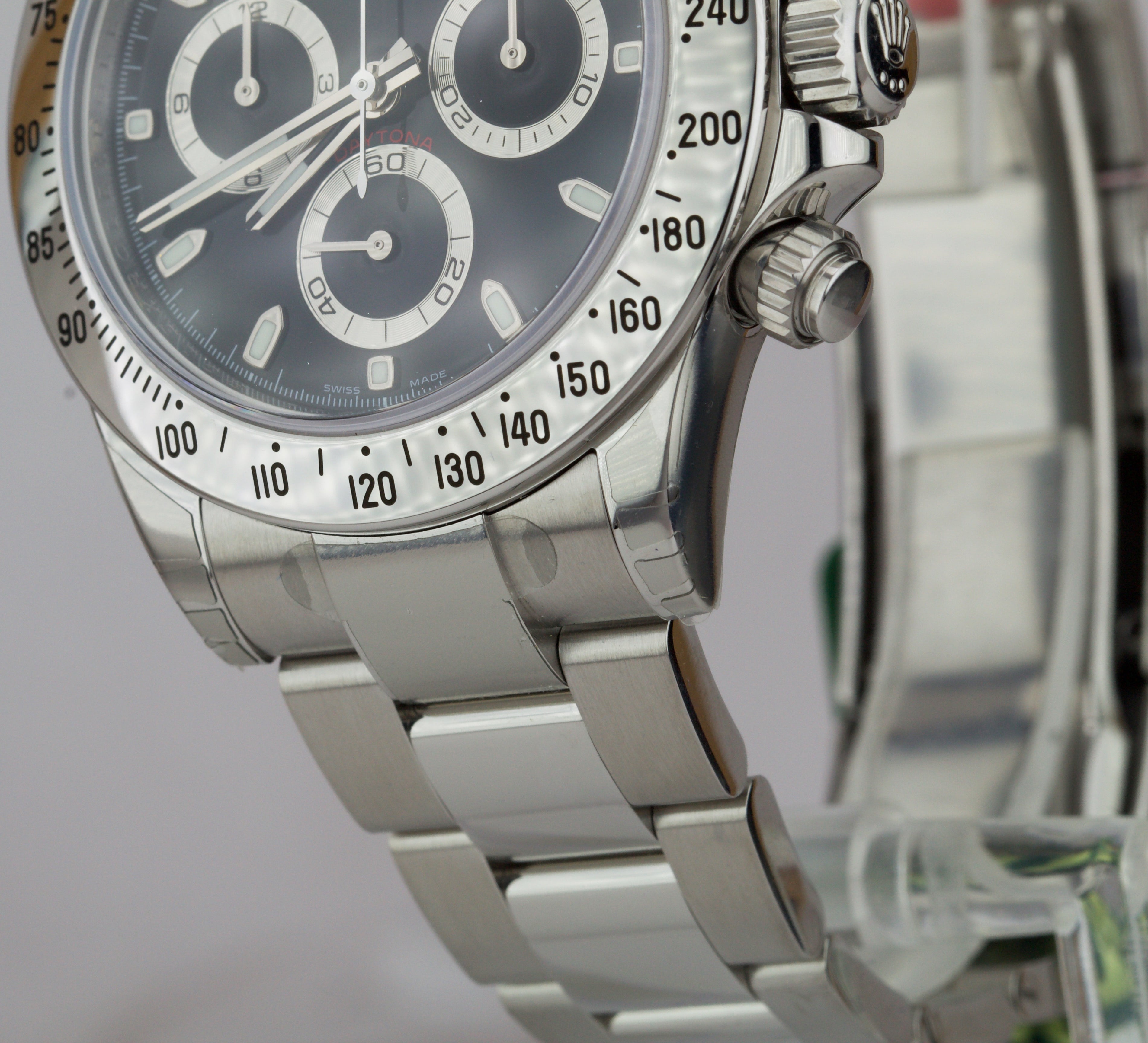 NOS BRAND NEW STICKERS Rolex Daytona Black 116520 40mm REHAUT FAT BUCKLE Watch
