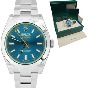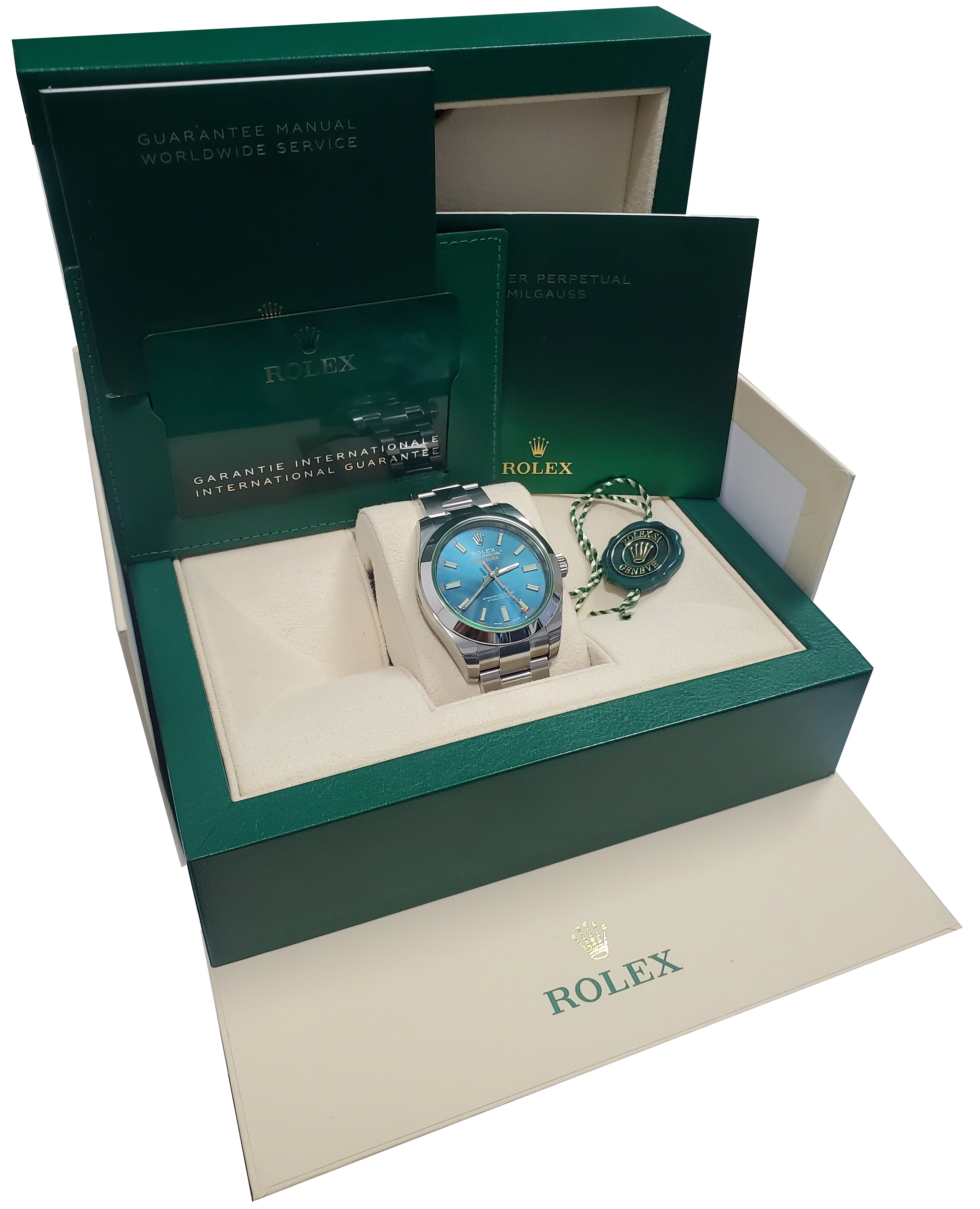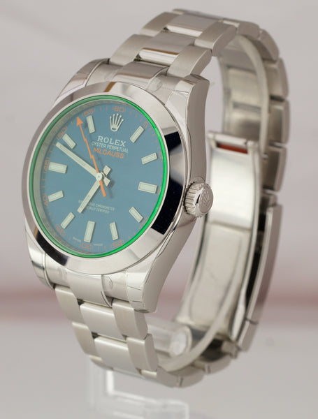 NOS NEW Rolex Milgauss Z-Blue Green Anniversary 40mm 116400 GV Stainless Watch
