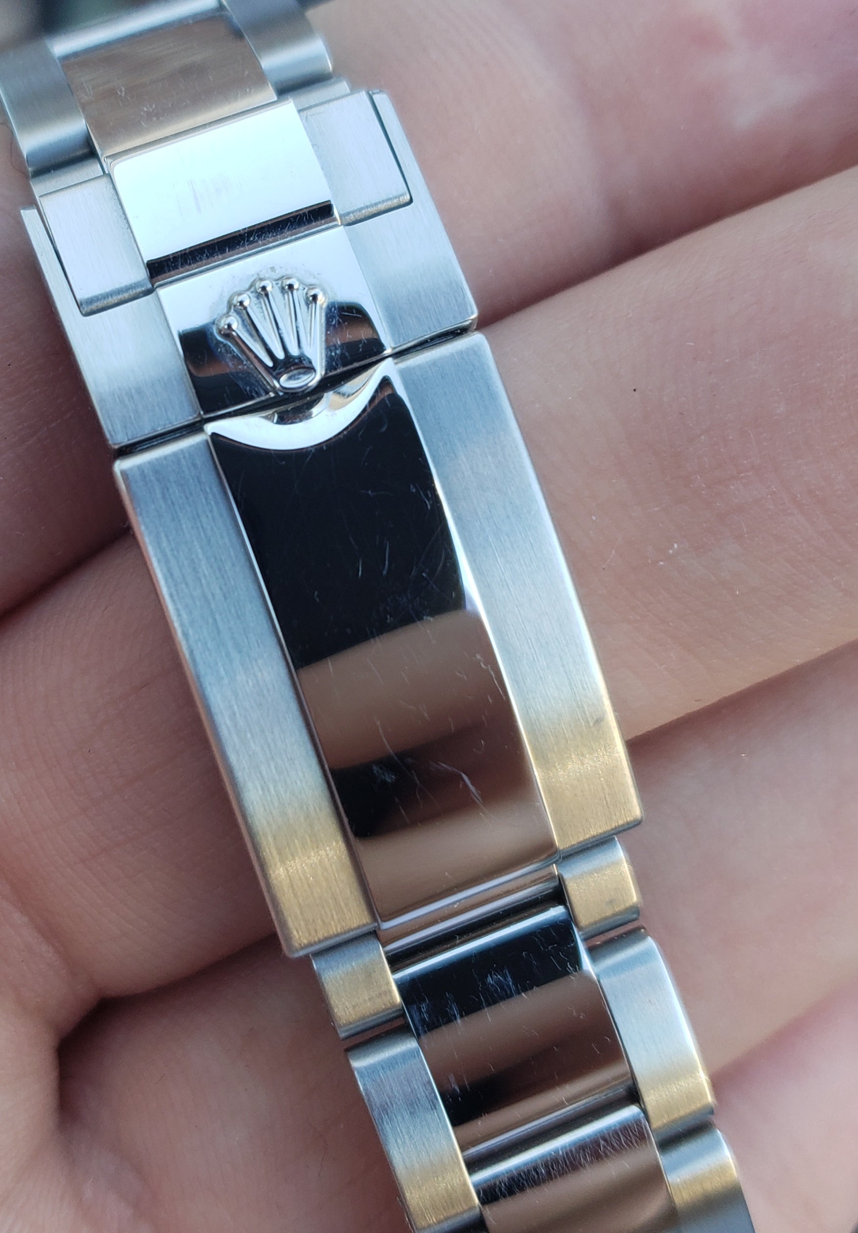 | Band | Original Rolex Stainless Steel Solid End Link (SEL) Oyster Bracelet with a Flip Lock easylink extension Deployment Clasp |