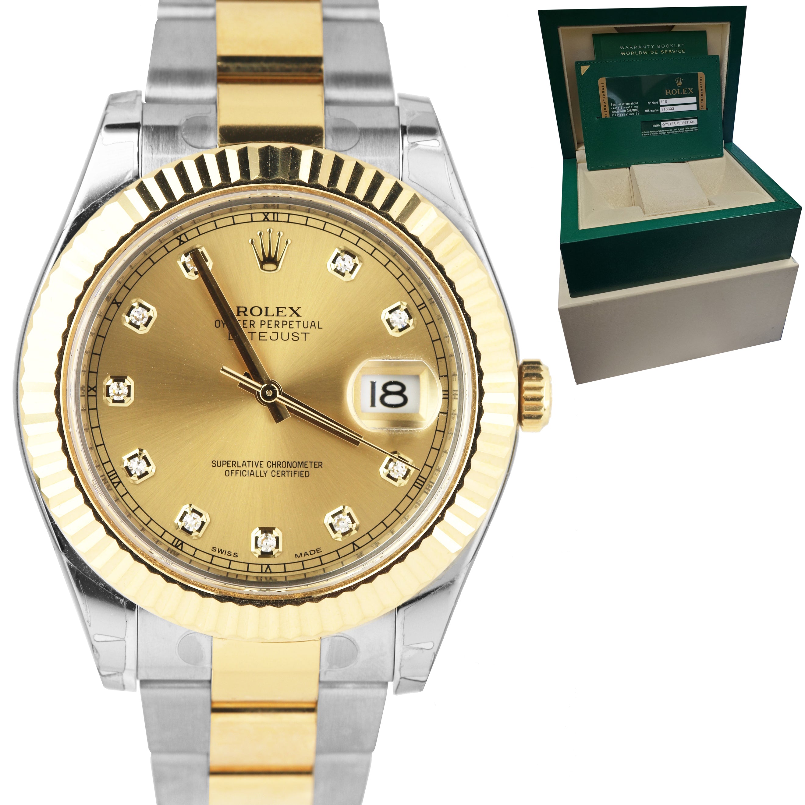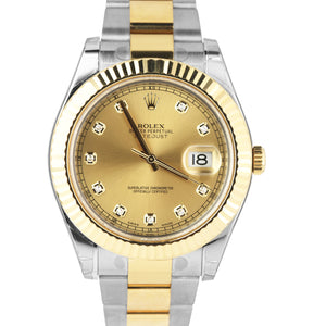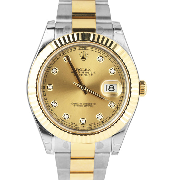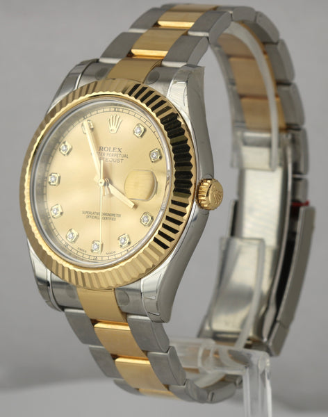 NOS Rolex Datejust II 2 Diamond Champagne 18K Two-Tone Gold 41mm Watch 116333