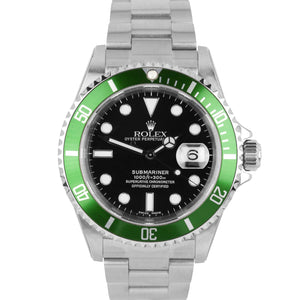 NOS STICKERED 2003 Rolex Submariner KERMIT Green FLAT 4 F-Serial Watch 16610 LV
